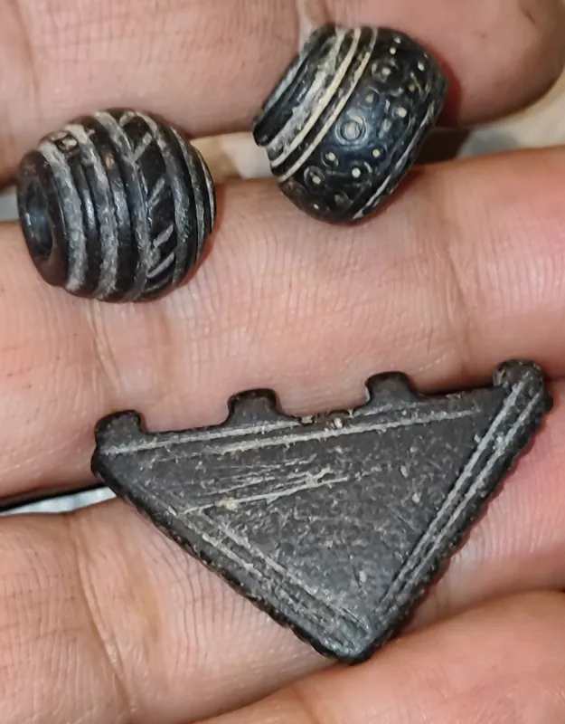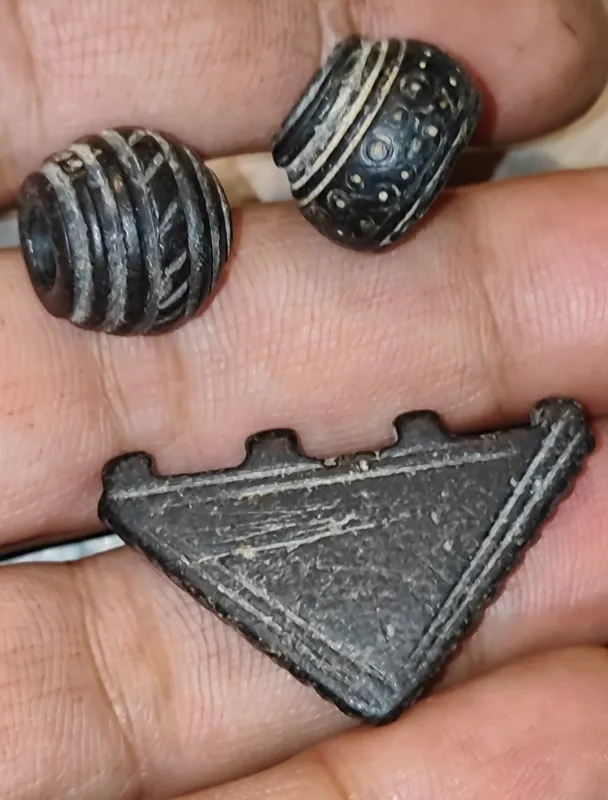 مجموعه پلاک و دو عدد مهره یشم باستانی و فوق کهنه