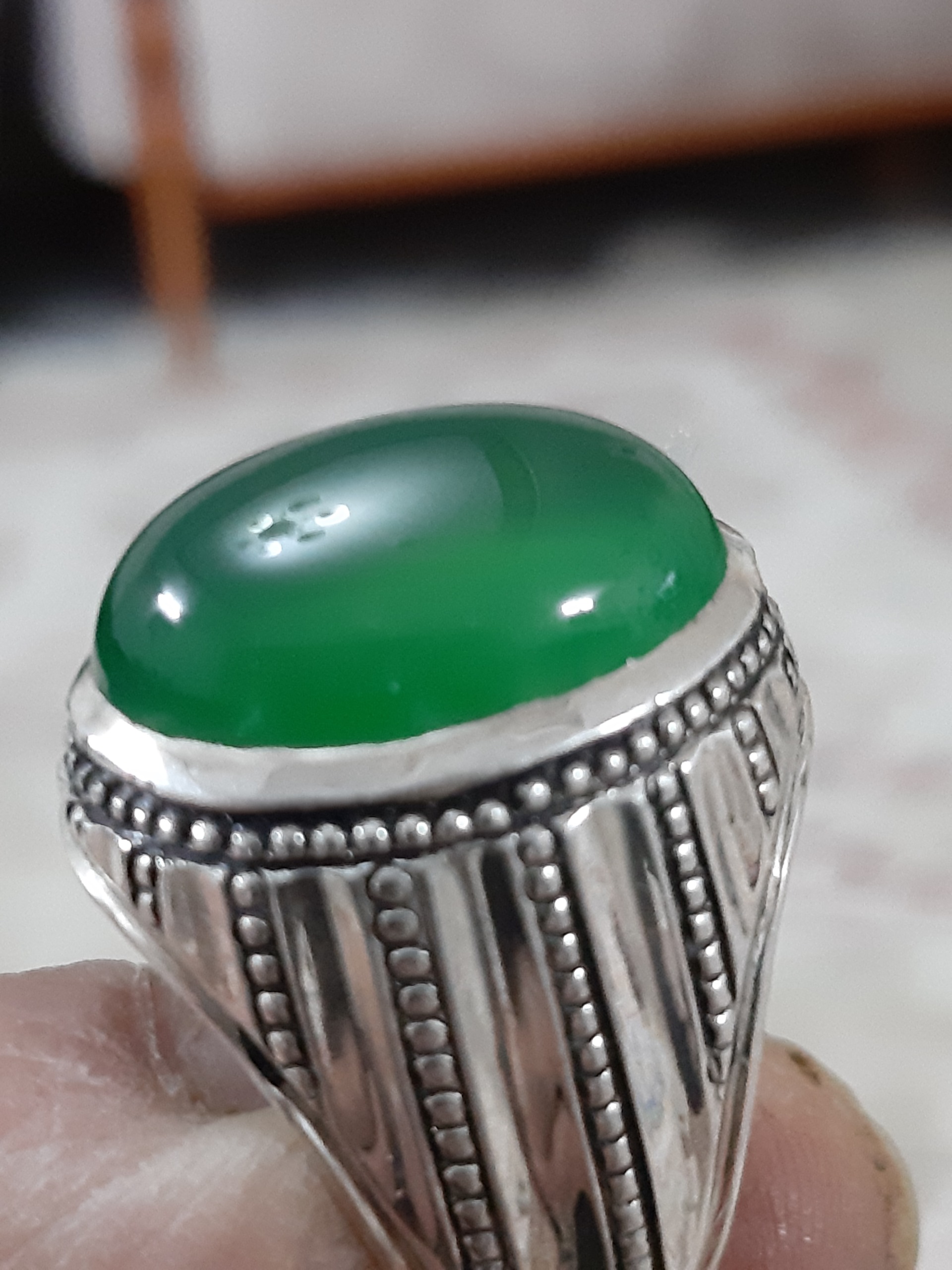 انگشترعقیق سبز المانی رکاب دستسازسایز64