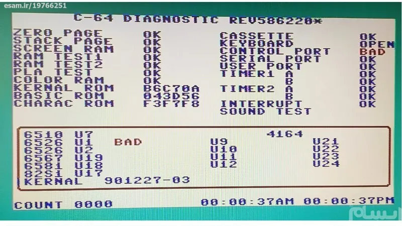 آزمایش RAM اصلی، RAM رنگی (Color RAM) و Character ROM برای یافتن بیت های معیوب.