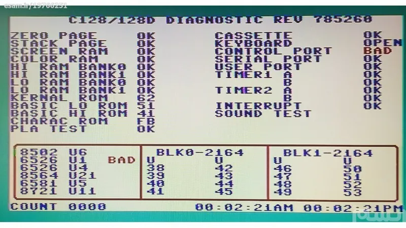 (C64 دارای دو چیپ CIA است هر دو تست می شوند.)