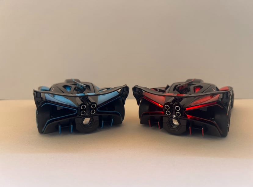 ماکت بوگاتی بولاید شارژی TYPE-C دودزا موزیکال با صدای ریس و دزدگیر با جزئیات بسیار دقیق که به همراه ماکت قطره چکان و کابل شارژ ارسال میگردد