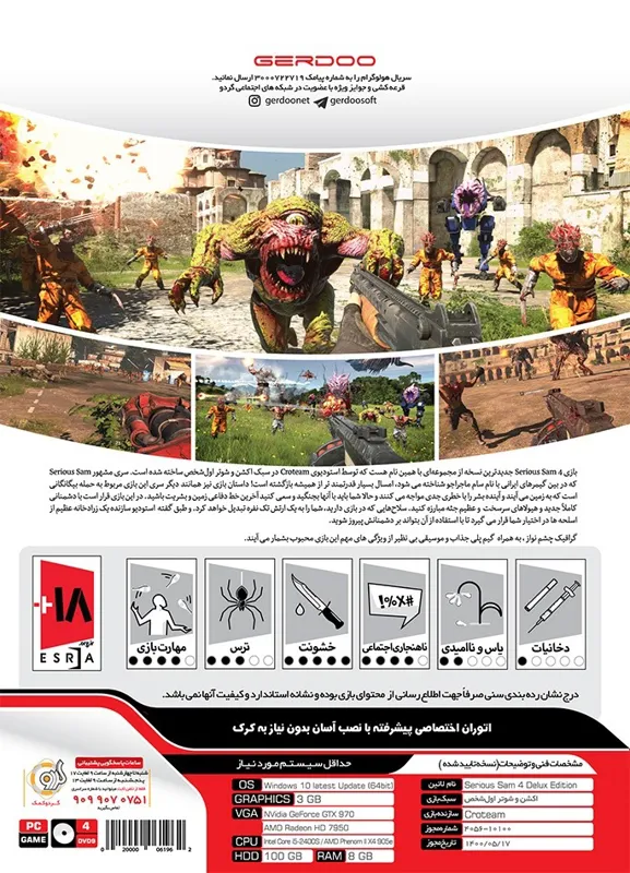 بازیSerious Sam 4جدیدترین نسخه ازمجموعهای باهمین نام هست که توسط استودیویCroteam درسبک اکشن وشوتراولشخص ساخته شده است.سری مشهور Serious Sam که در بین گیمرهای ایرانی با نام سام ماجراجو شناخته می شود، امسال بسیار قدرتمند تر از همیشه بازگشته است! داستان بازی نیزهماننددیگرسری این بازی مربوط به حمله بیگانگانی است که به زمین میآیند و آینده بشرراباخطری جدی مواجه میکنندوحالاشمابایدباآنهابجنگیدوسعی کنیدآخرین خط دفاعی زمین و بشریت باشید.دراین بازی قرار است با دشمنانی کاملاًجدیدوهیولاهای سرسخت و عظیم جثه مبارزه کنید. سلاحهایی که دربازی دارید،شمارابه یک ارتش تکنفره تبدیل خواهدکرد.وطبق گفته استودیوسازنده یکزرادخانه عظیم ازاسلحه هادراختیارشماقرارمیگیردتابااستفاده ازآن بتواندبردشمنانش پیروزشوید.