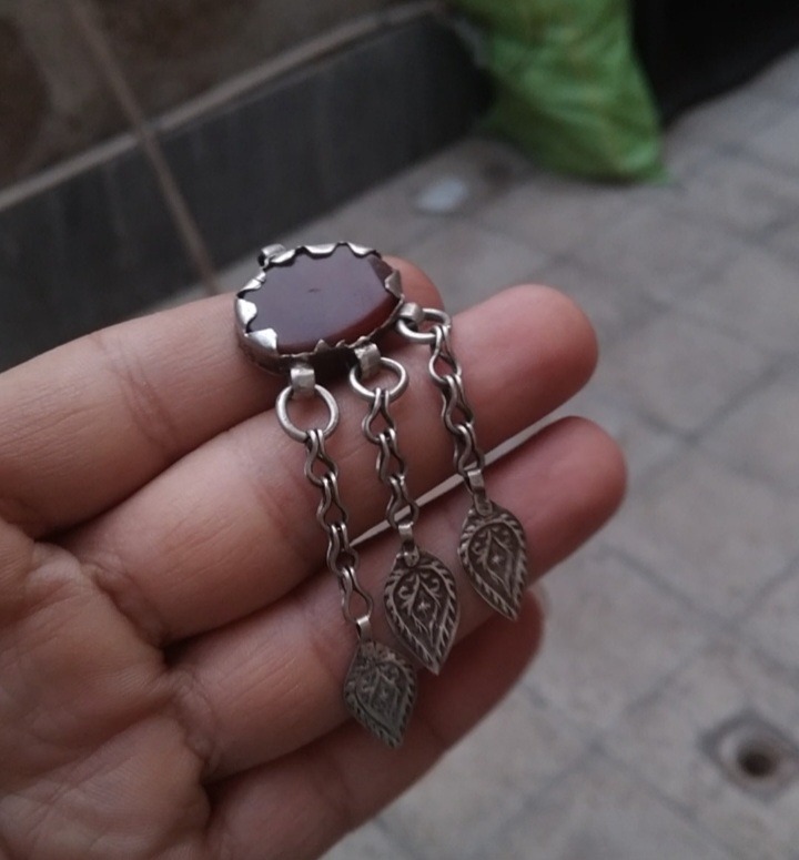 این آویز بالای 300سال قدمت داره جنسش نقرس عیار نقرش بالاست کاملا سالمه سنگش عقیق سرخ یمنی که سنگش فابریکه و تراش دار هست سنگش کاملا سالمه ترک .رگه .شکستگی.پریدگی اصلا نداره.فقط قیمت سنگش 8ملیون تومنه قابش 10سانت طول داره نزدیک 15گرمه یه کار تک و کلکسیونی به حساب میاد که فقط تو موزه میشه پیداش کرد.توی بازار واقعا کمیابه و تا 15ملیون تومن قیمتشه.با ضمانت خرید.