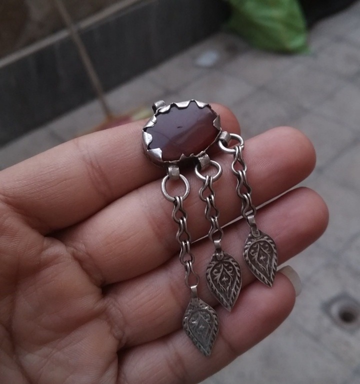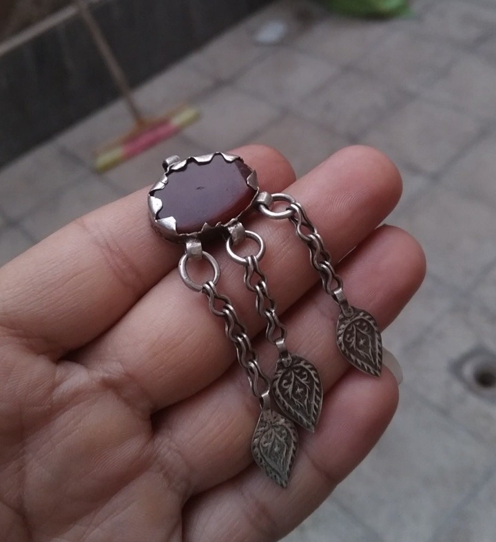 آویز نقره کهنه باعقیق سرخ یمنی کهنه تراش ثبتی