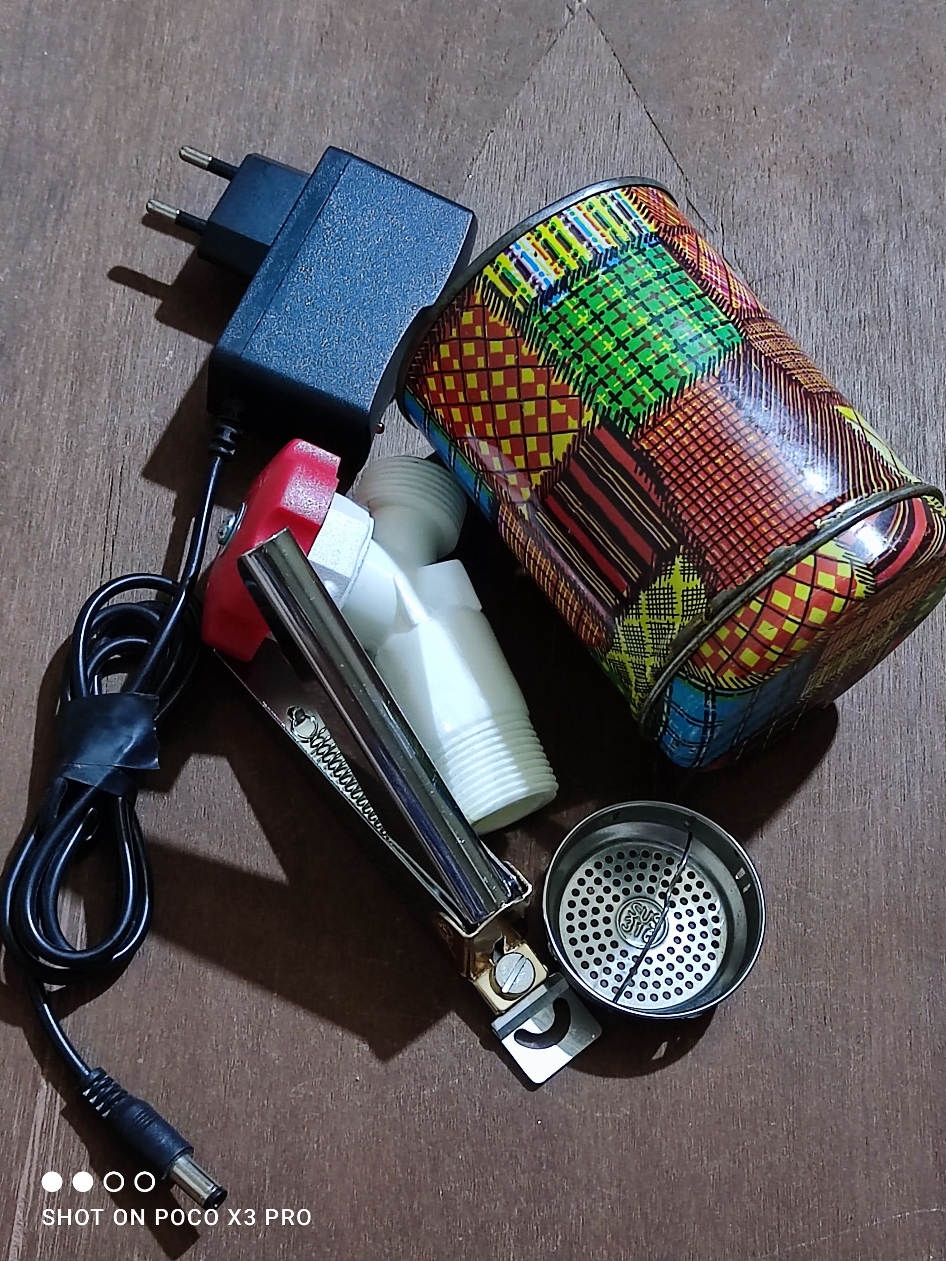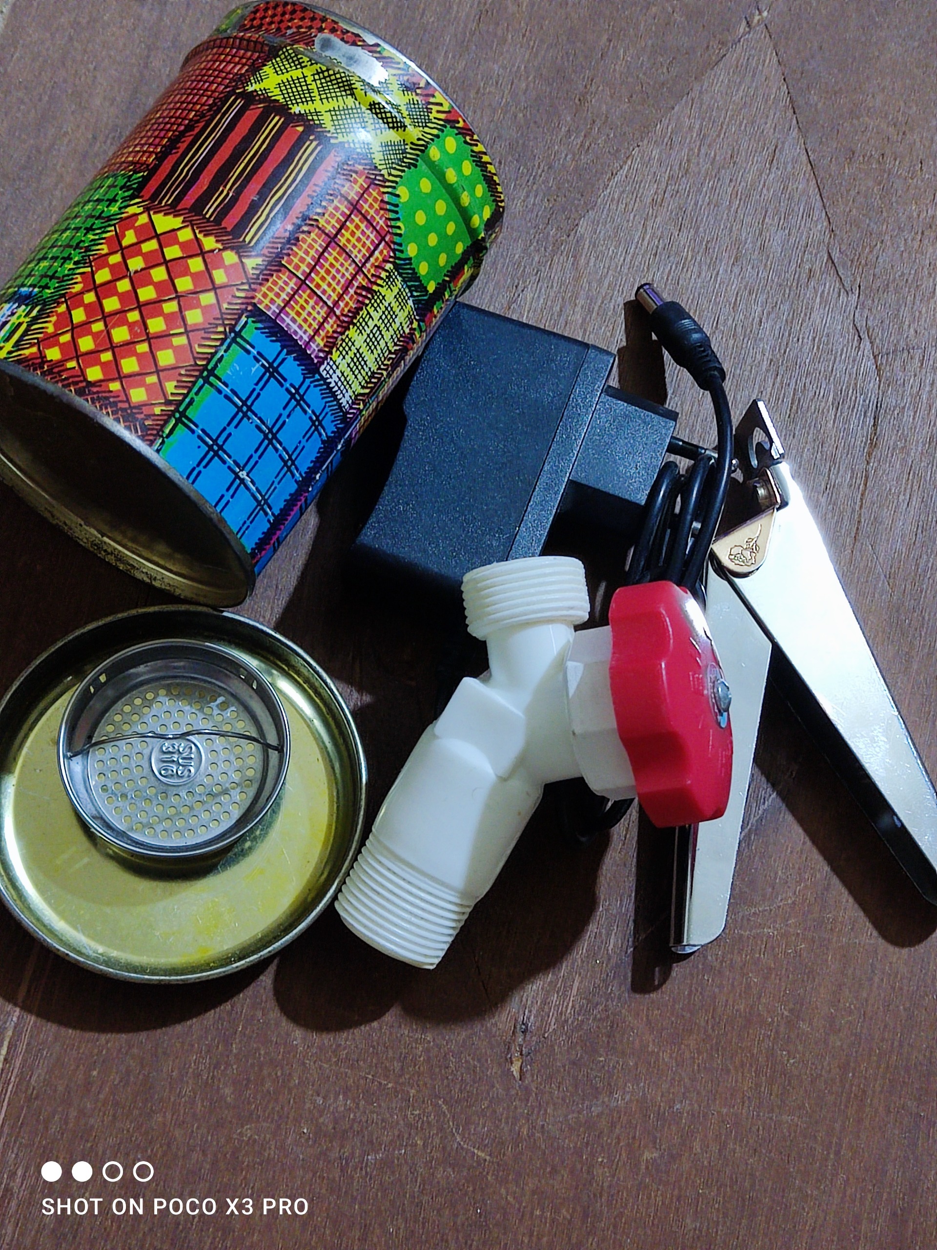 قوطی فلزی قدیمی شیر آب قدیمی شارژر نوک درشت قدیمی و یه ابزار شبیه منگنه که احتمالا یجور وسیله آرایشی هست قیمت برای همشه مطابق تصاویر یجور صافی استیل هم هست کلا پنج قلم میشه روی هم
