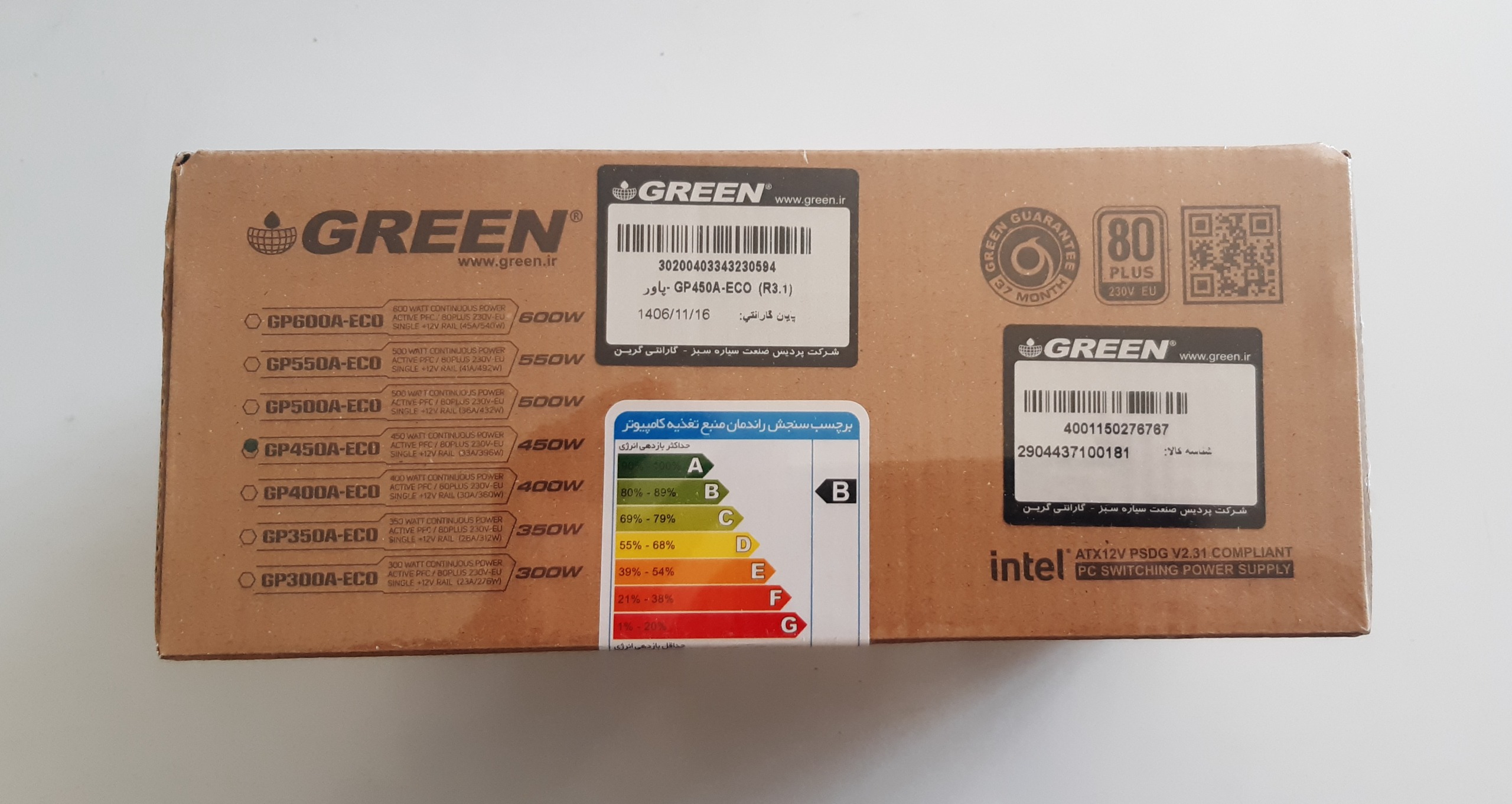 پاور آکبند کامپیوتر گرین GP-450A-eco (گارانتی)