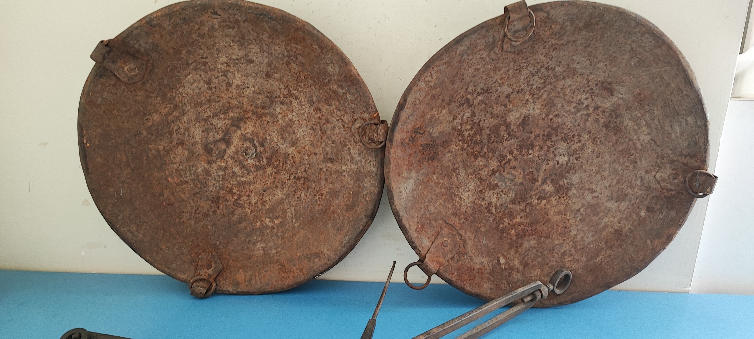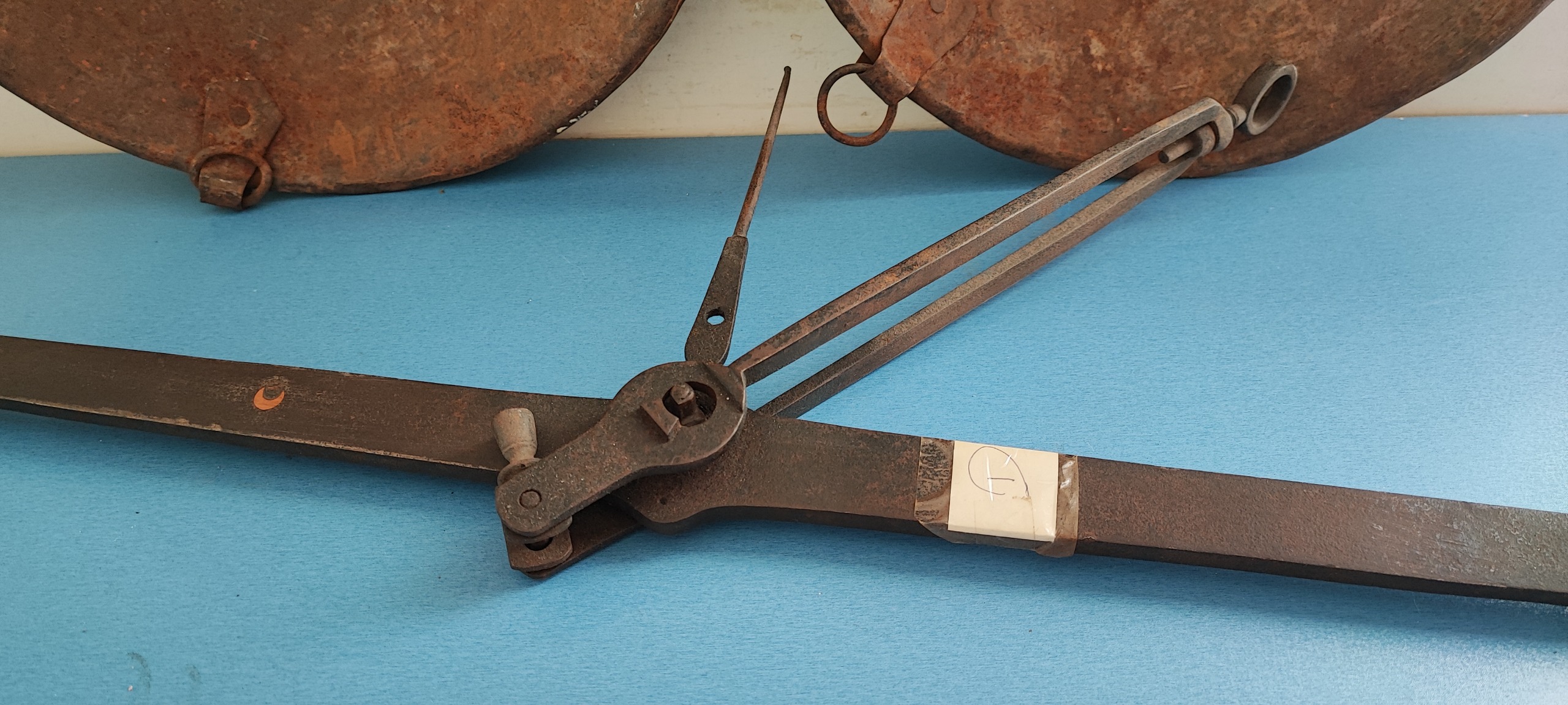63 سانت طول، 2100 گرم وزن بدون احتساب کفه ها، دارای مهر، دارای جفت کفه فولادی 37 سانت قطر، زیبا و آنتیک و کلکسیونی