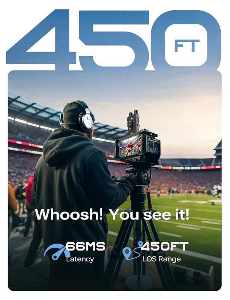 [تا 4 گزینه نظارت APP]. Mars 4K از انتقال بیسیم به دستگاههای تلفن همراه/تبلت RX/iOS/Android پشتیبانی میکند. هنگام استفاده از 1TX به 1RX، امکان 2 مانیتور از طریق کابل HDMI و SDI و 2 دستگاه تلفن همراه با نظارت APP را فراهم میکند. هنگام استفاده از 1TX بدون RX، امکان نظارت APP را فراهم میکند. همچنین میتوانید یک Mars 4K RX دیگر را به سیستم جفت کنید و آنها را به 4 مانیتور وصل کنید تا کارگردان/تهیهکننده/حامی مالی بتوانند فیلمبرداری را سر صحنه مشاهده کنند. [طراحی و تجربه برتر]. دارای مقاومت عالی در برابر خوردگی و سایش برای دوام بالا حتی در دماهای بسیار بالا. طراحی آنتن گلولهای بدون نیاز به جدا کردن، پیکربندی سریع و استفاده بدون دردسر را بهینه میکند. صفحه نمایش LCD رنگی و جویاستیک کاربرپسند، امکان راهاندازی سریع و بررسی وضعیت را فراهم میکنند. از گزینههای تغذیه چندگانه از جمله تغذیه DC 6-16V، باتری NP-F970/750/550، تغذیه USB Type-C 5V/2.5A پشتیبانی میکند. [پروتکل QC/PD و شارژ 5V/2A پشتیبانی نمیشوند]