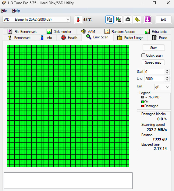 1 عدد هارد اکسترنال WD Elements دو ترابایتِ کاملا سالم + کابل USB.
