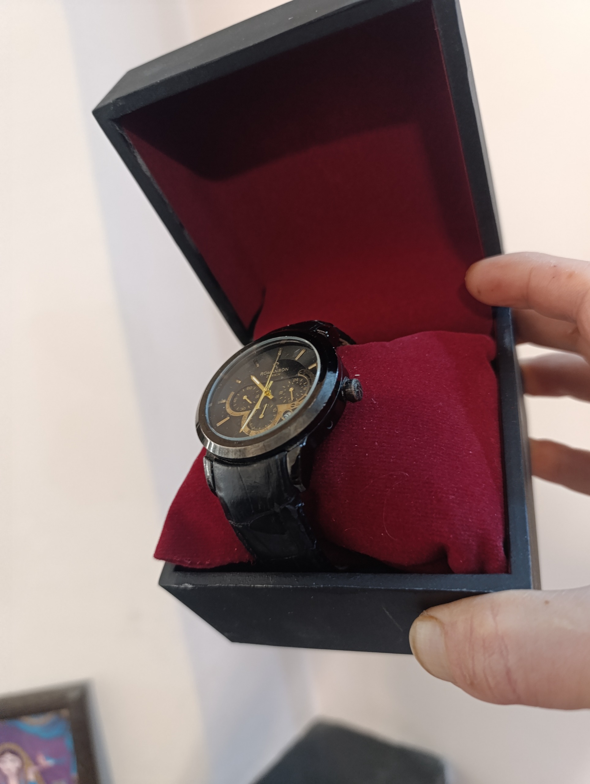 مزایده فاخر و فوق العاده سوپر ساعت 5موتوره رومانسون وارداتی اورجینال بند چرم اصل ضد آب فقط دو یا سه بار استفاده شده و هیچ تفاوتی با آک نداره