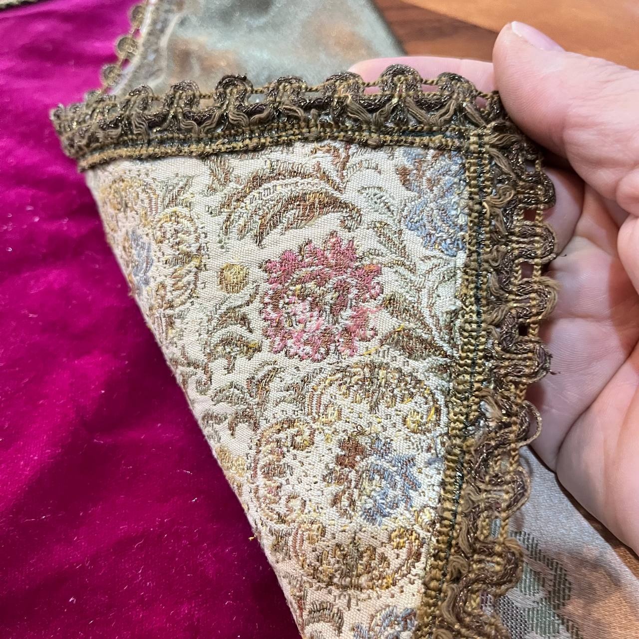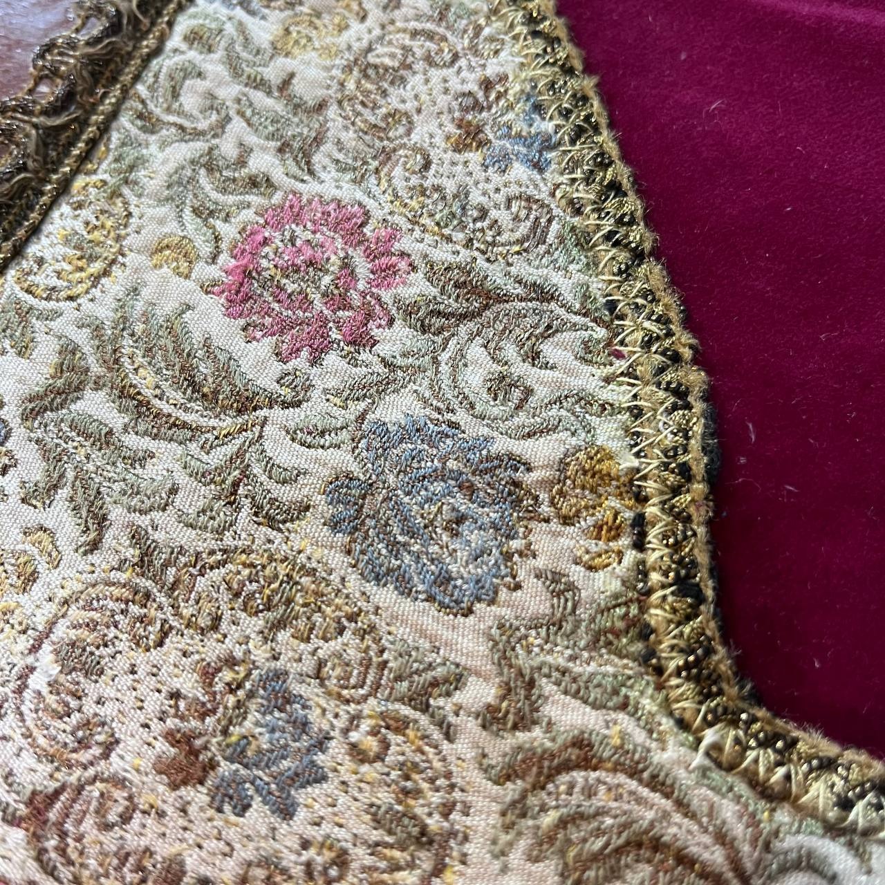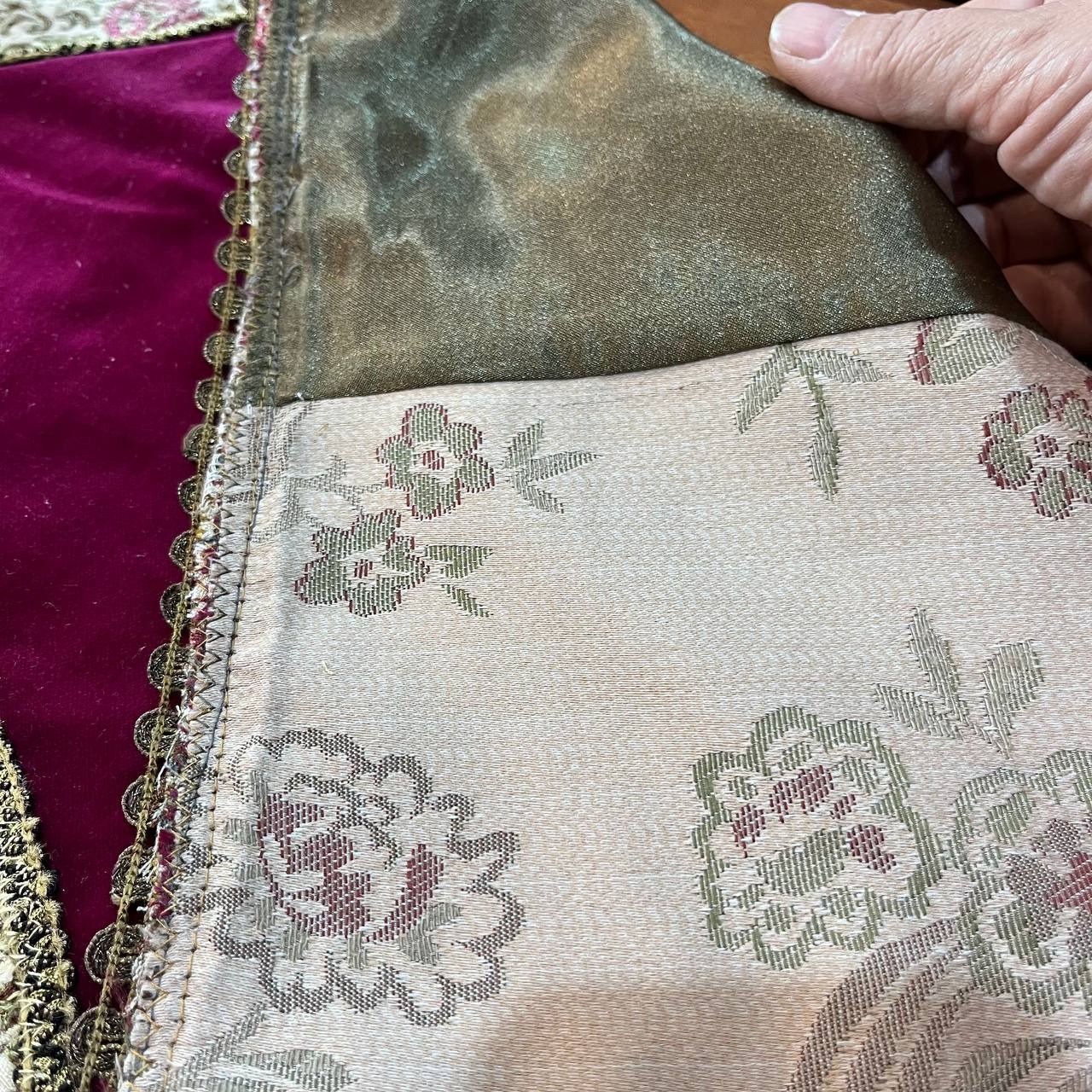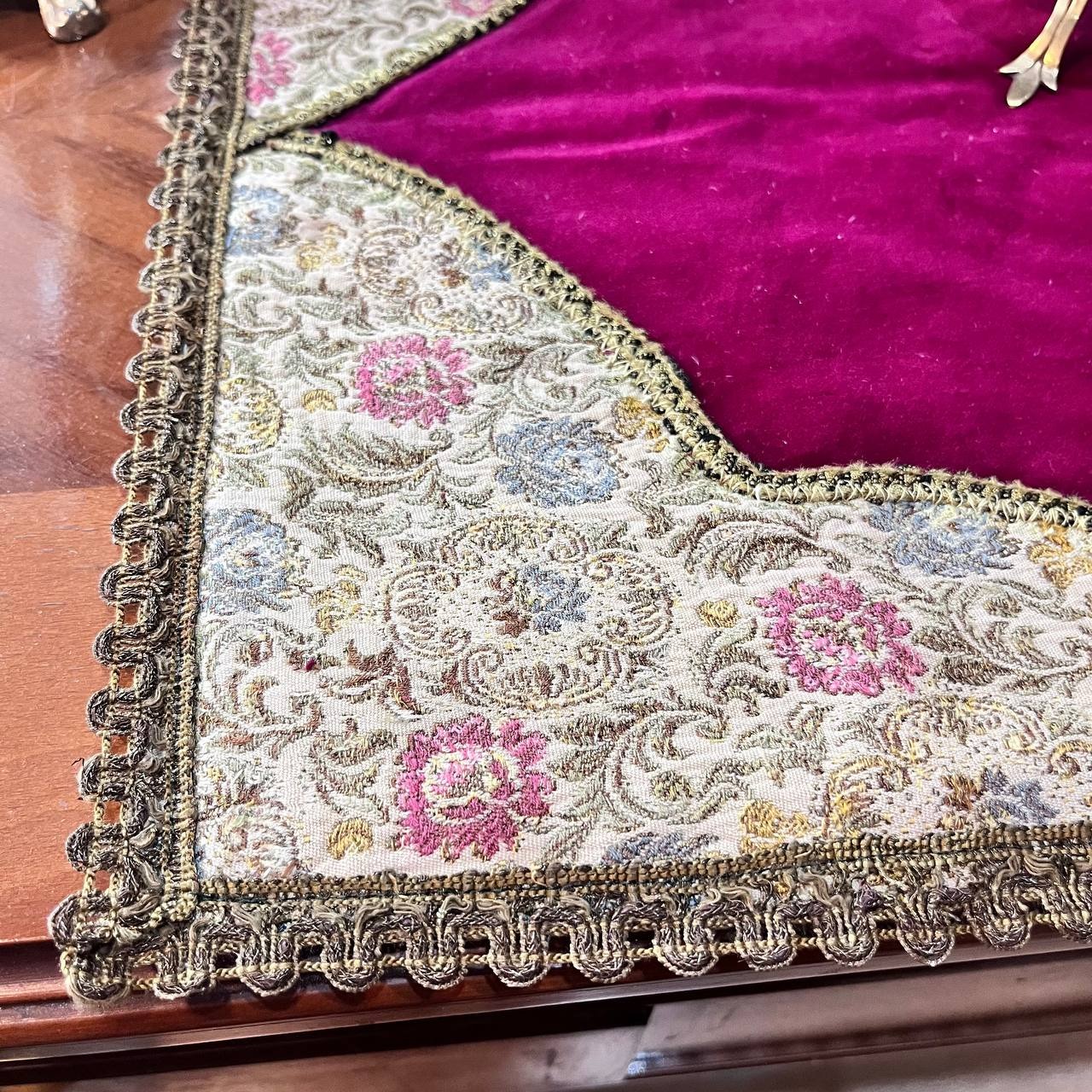 رومیزی قدیمی و خارجی ترکیب مخمل و پارچه سوزن دوزی با یراقهای سیمی قدیمی استر دار