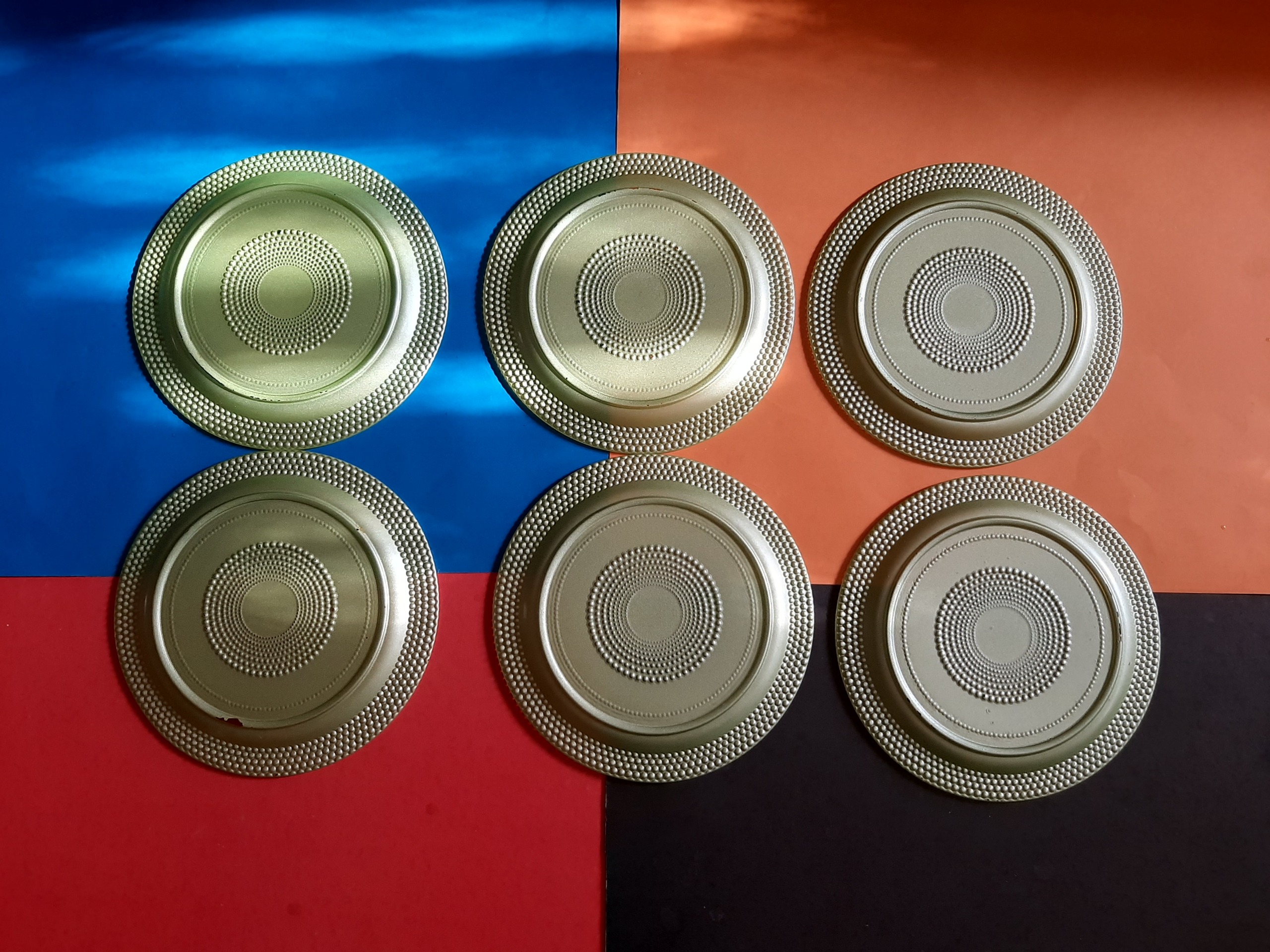 بشقاب میوه خوری ، 6 عدد . بدون شکستگی ، رنگ بشقاب ها در اثر شستشو از بین میرود مثل عکس آخر که نمونه ای از رفتگی رنگ بشقاب است . جعبه ندارد .