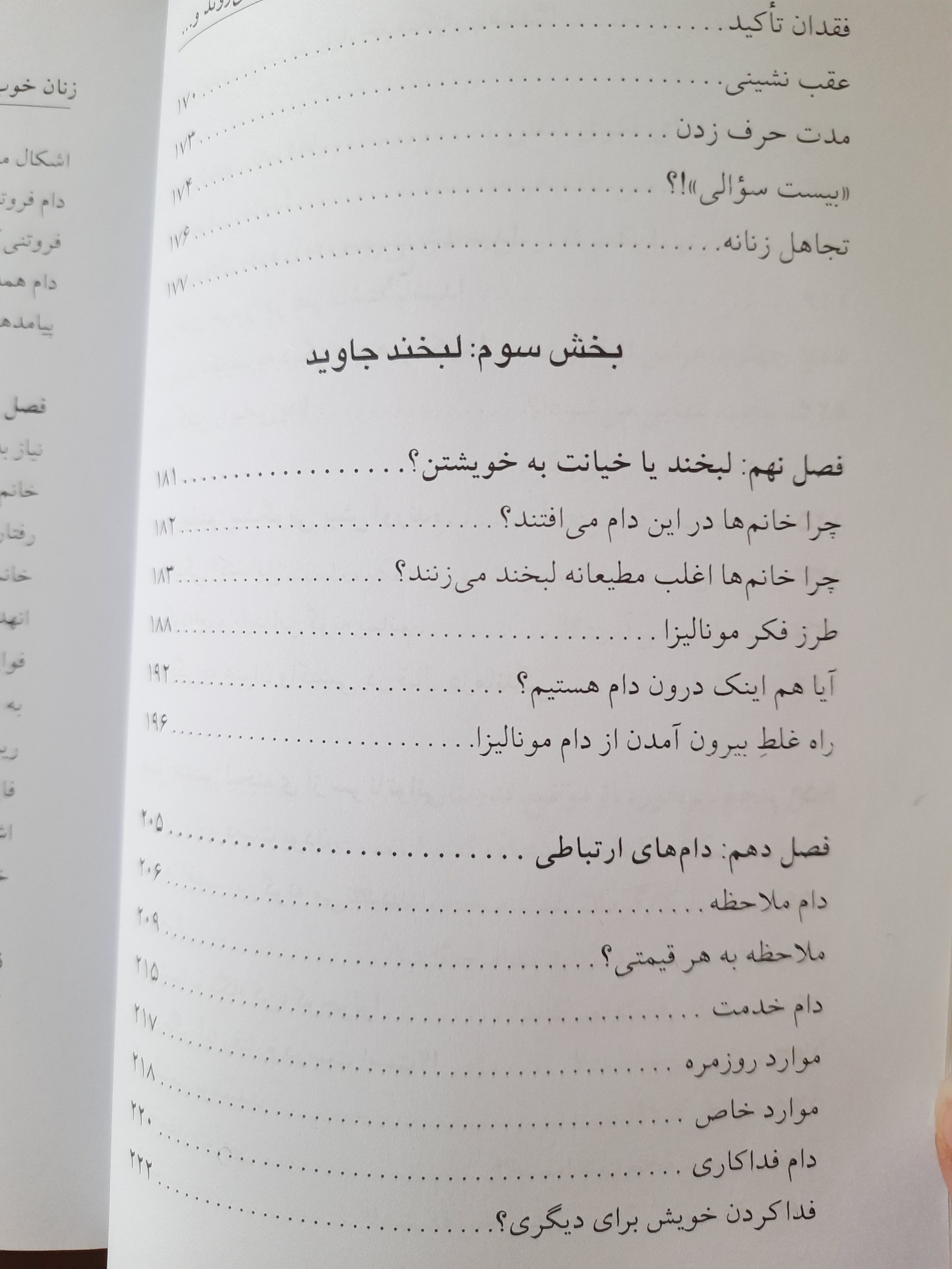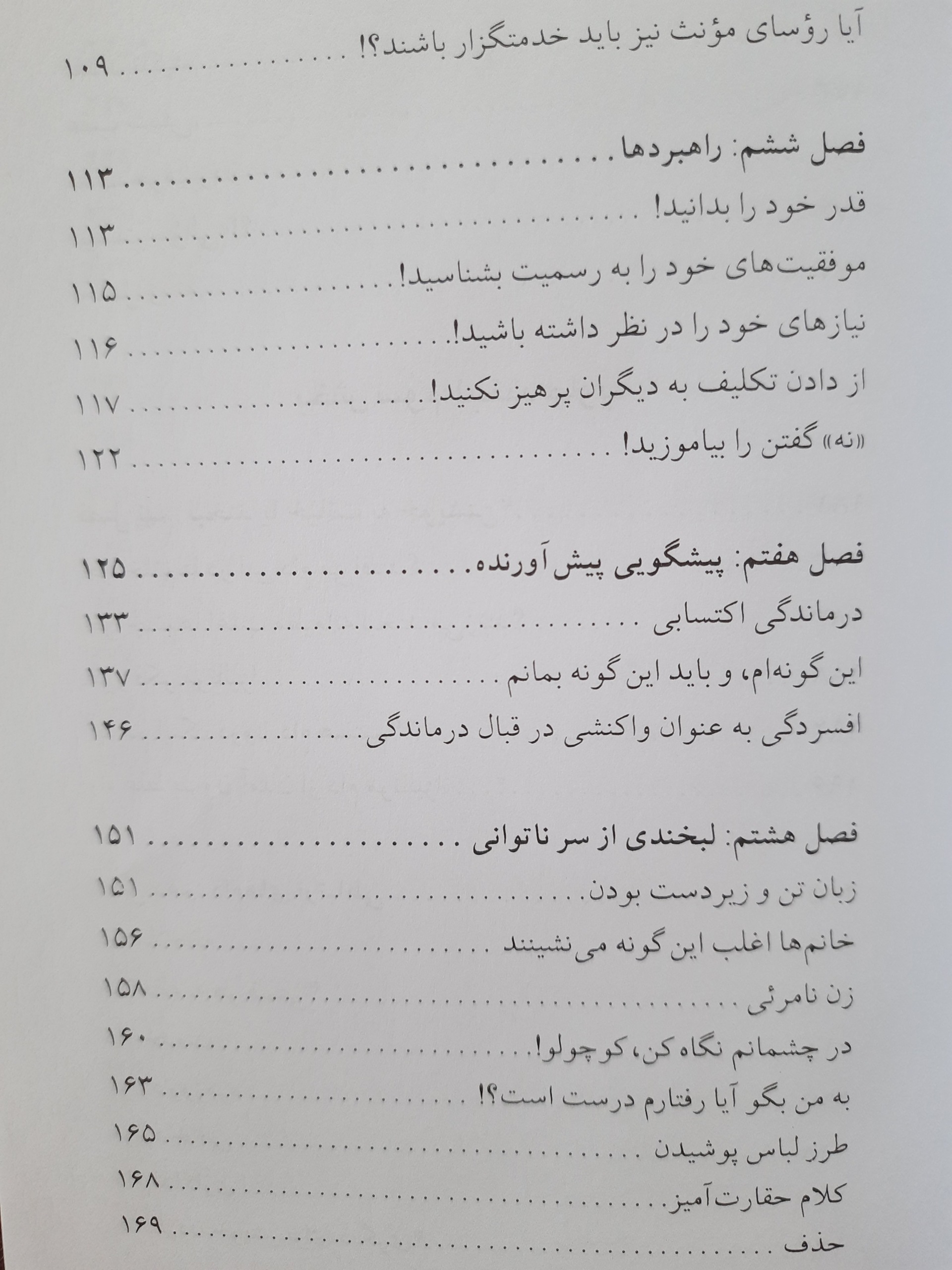 نسل نواندیش/ شامل مباحث دامهای فکری شغلی هراس از قدرت برخورد از موضع قدرت راهبردها پیشگویی پیش آورنده لبخندی از سر ناتوانی دامهای فکری روزمره زن رام شده لبخند یا خیانت به خویشتن دامهای ارتباطی کنارهگیری زنان استقلال مالی مدت حرف زدن طرز فکر مونالیزا و...