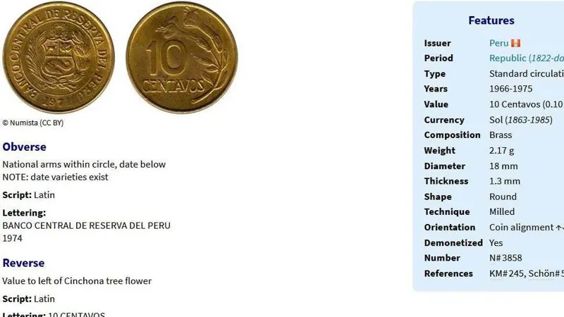 سکه 10 سنتاوس پرو 1969 (کمیاب)