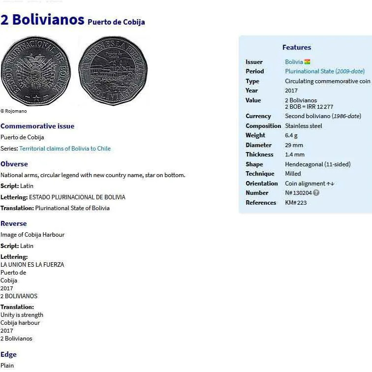| کشور | بولیویانو و پزو بولیوی |