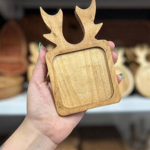 زیر لیوانی چوبی مربع شاخ گوزن بیگ