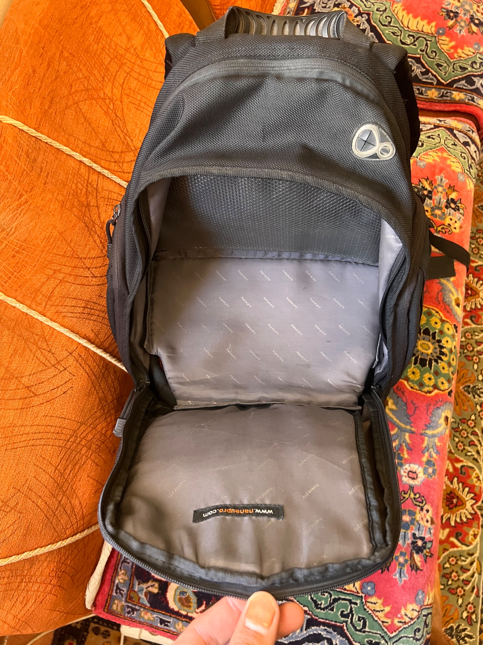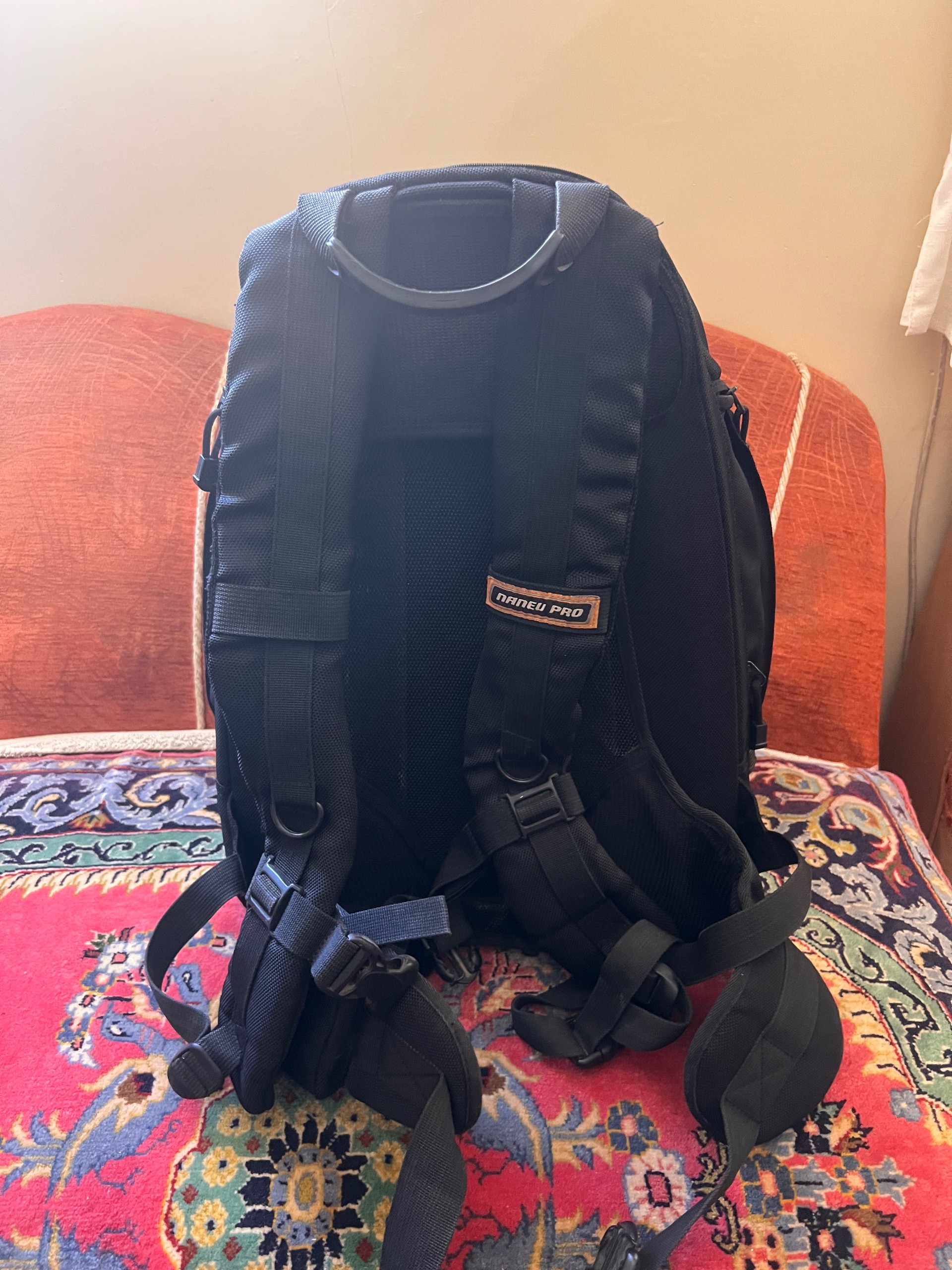 Naneu Pro Adventure K-3 Airflow Suspension Back Camera Backpack کاملا سالم ، استفاده شدس اما سلامت کامل داره زیپهها سالم بدنه کمی خش داره که به راحتی دیده نمی شه ، اورجینال ، بسیار جا دار ، جای لپ تاپی ٫ جای تجهیزات دوربین ، ، رین کاور