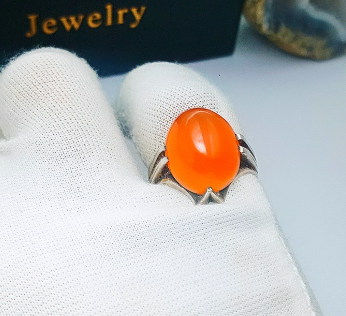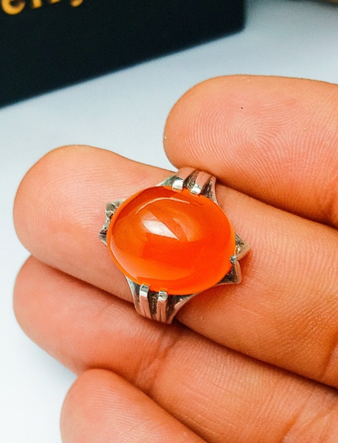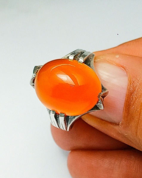 انگشتر زیبا و خوشدست عقیق طبیعی و معدنی با رنگ زیبای پرتقالی دوستان رنگش از عکس خیلی خیلی زیباتره