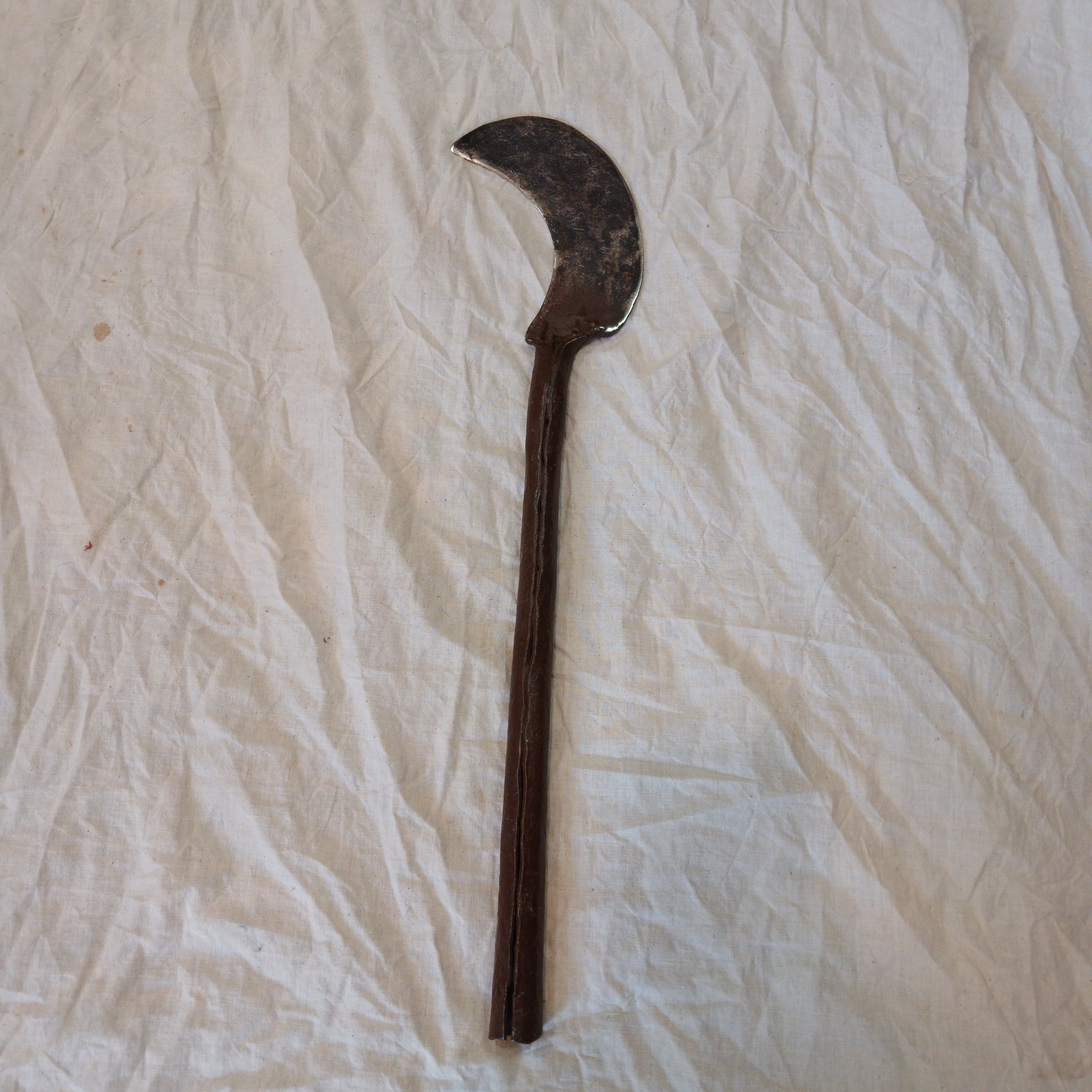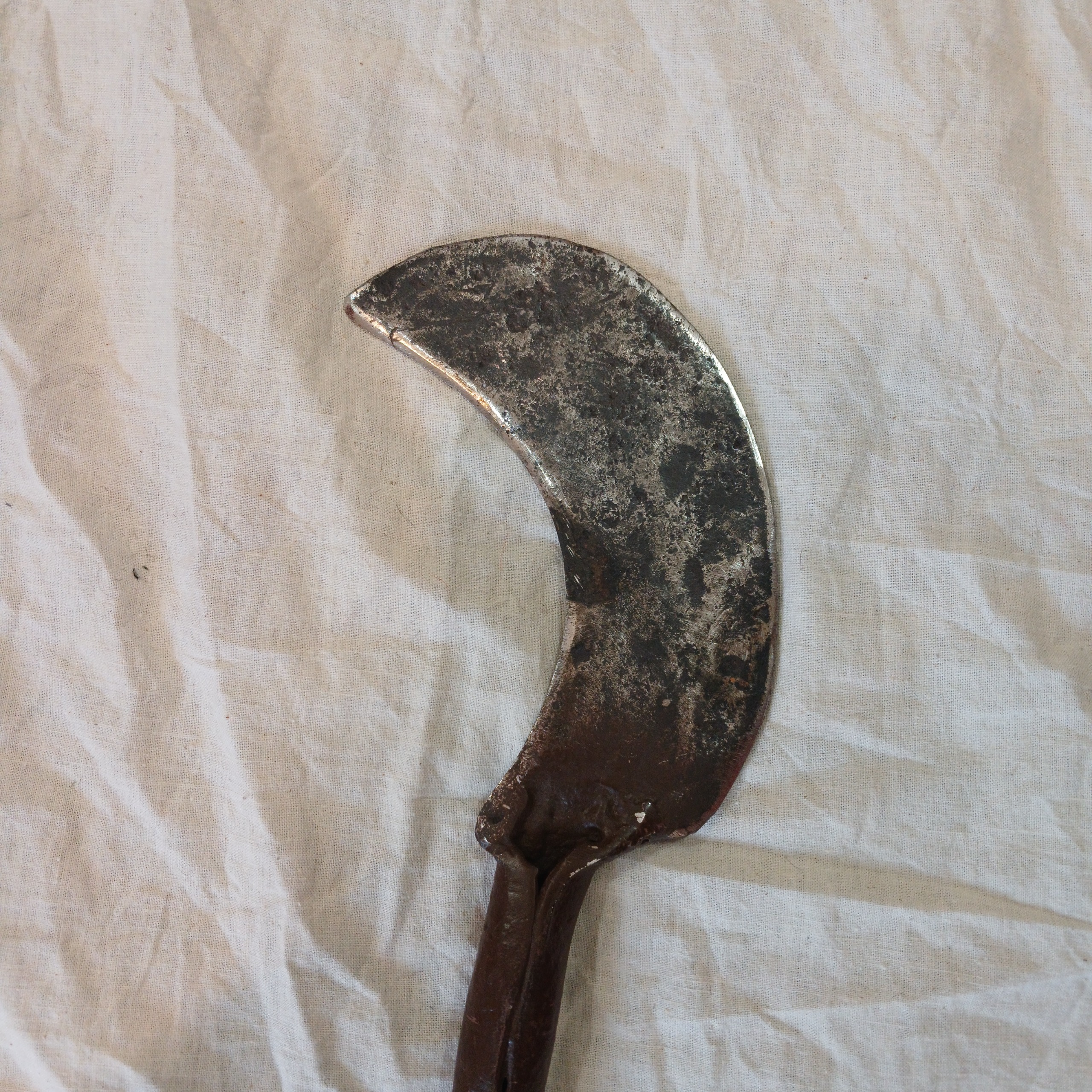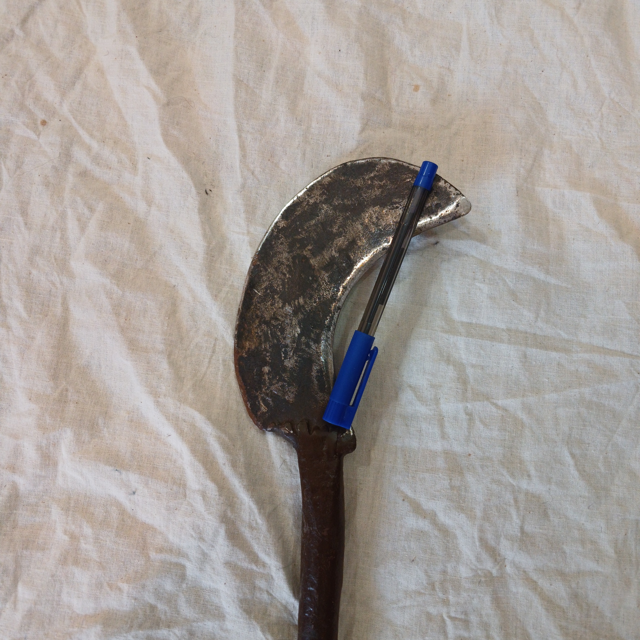ابزار فولادی قدیمی دست ساز کار آهنگر مراغه ای برای کندن و تمیز کردن شاخه های اضافی درختان اندازه طول کلی 53 سانت و تیغه طول 16 و عرض 6 سانت.