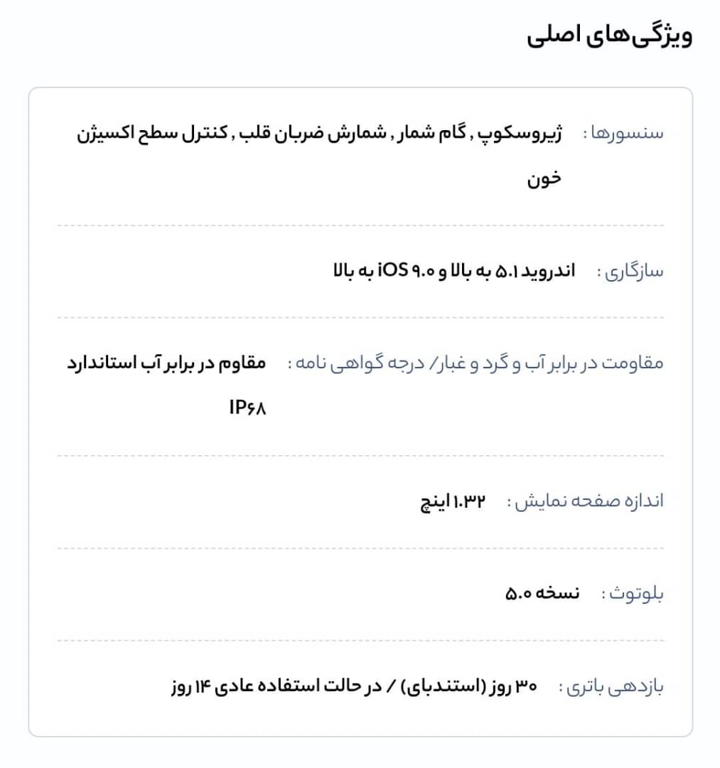 مشخصات کالا