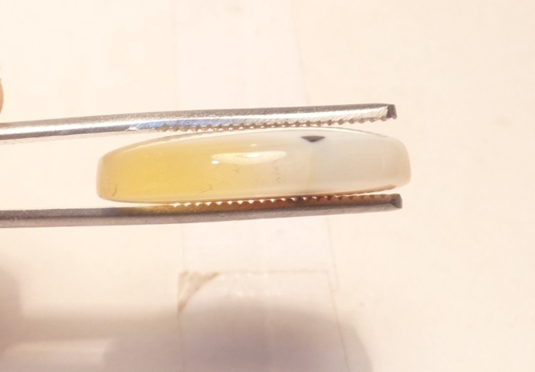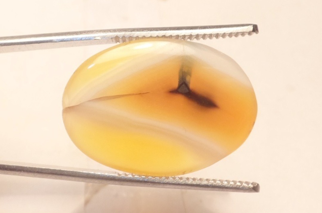 نگین عقیق یمنی چندرنگ طبیعی زرد.سفید.مشگی.نارنجی تراش بیضی دیواره دارزیرمحدب مناسب برای حکاکی وزن 3.9 ابعاد24.5 در17.5 درارتفاع 5 میلیمتر