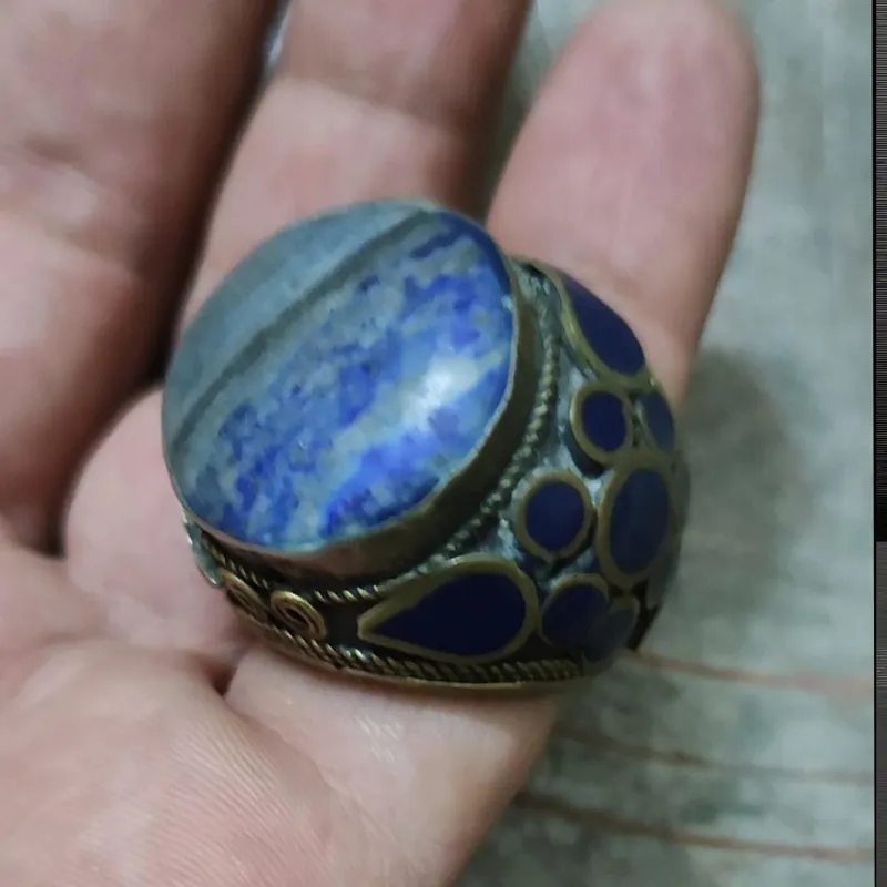 انگشتر لاجورد کهنه و کلکسیونی رکاب هفت جوش