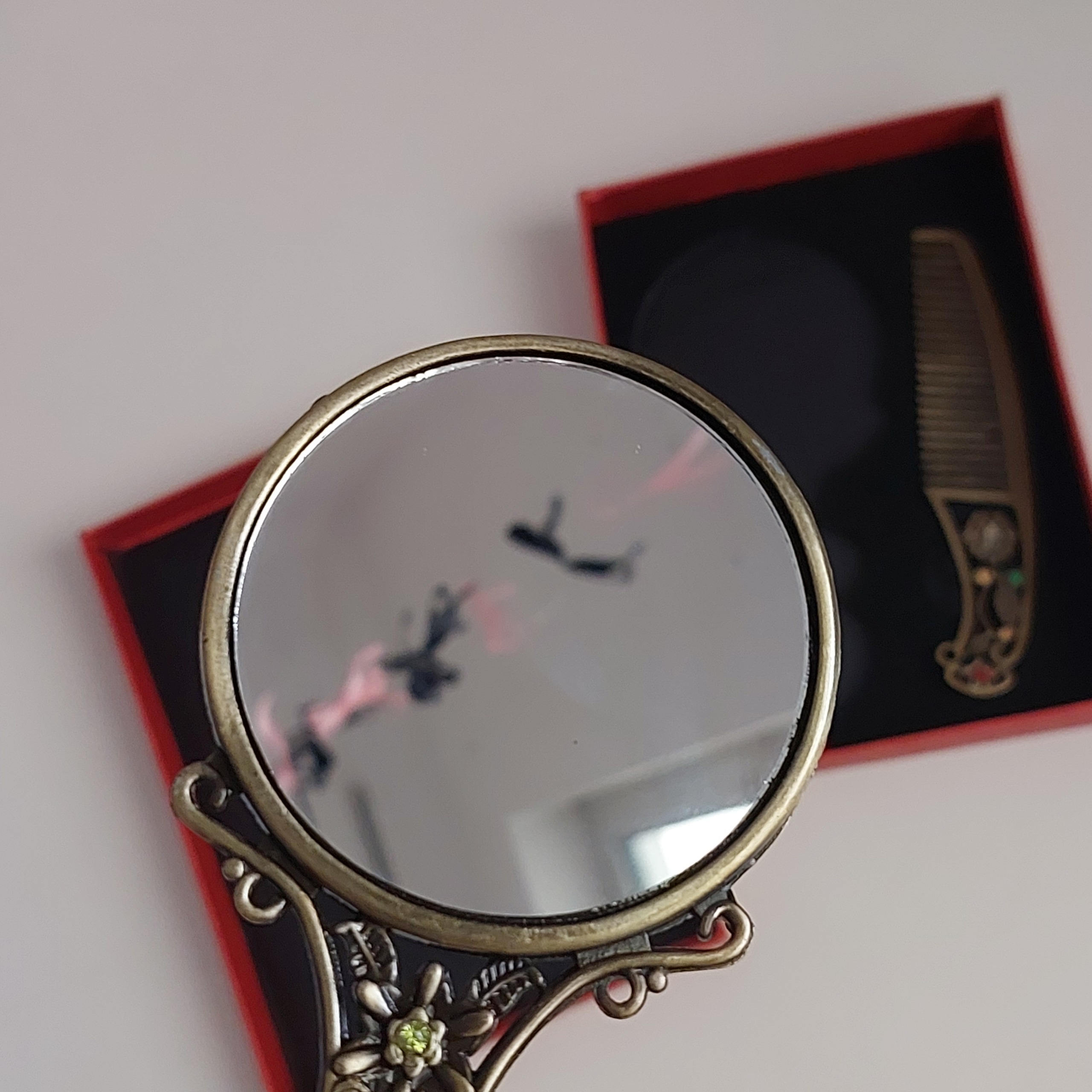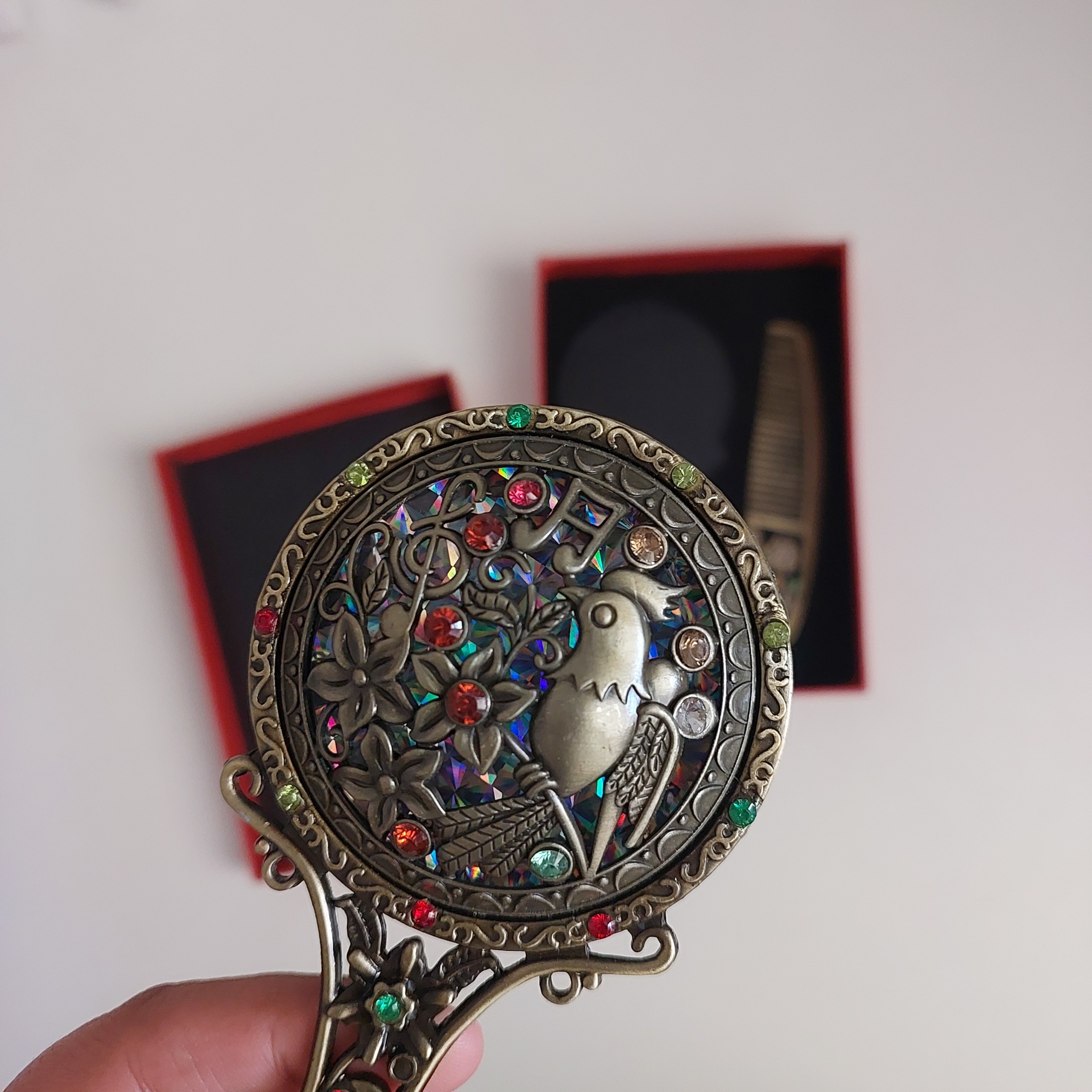 آینه و شانه ی نگین دار وینتج فلزی همراه با جعبه