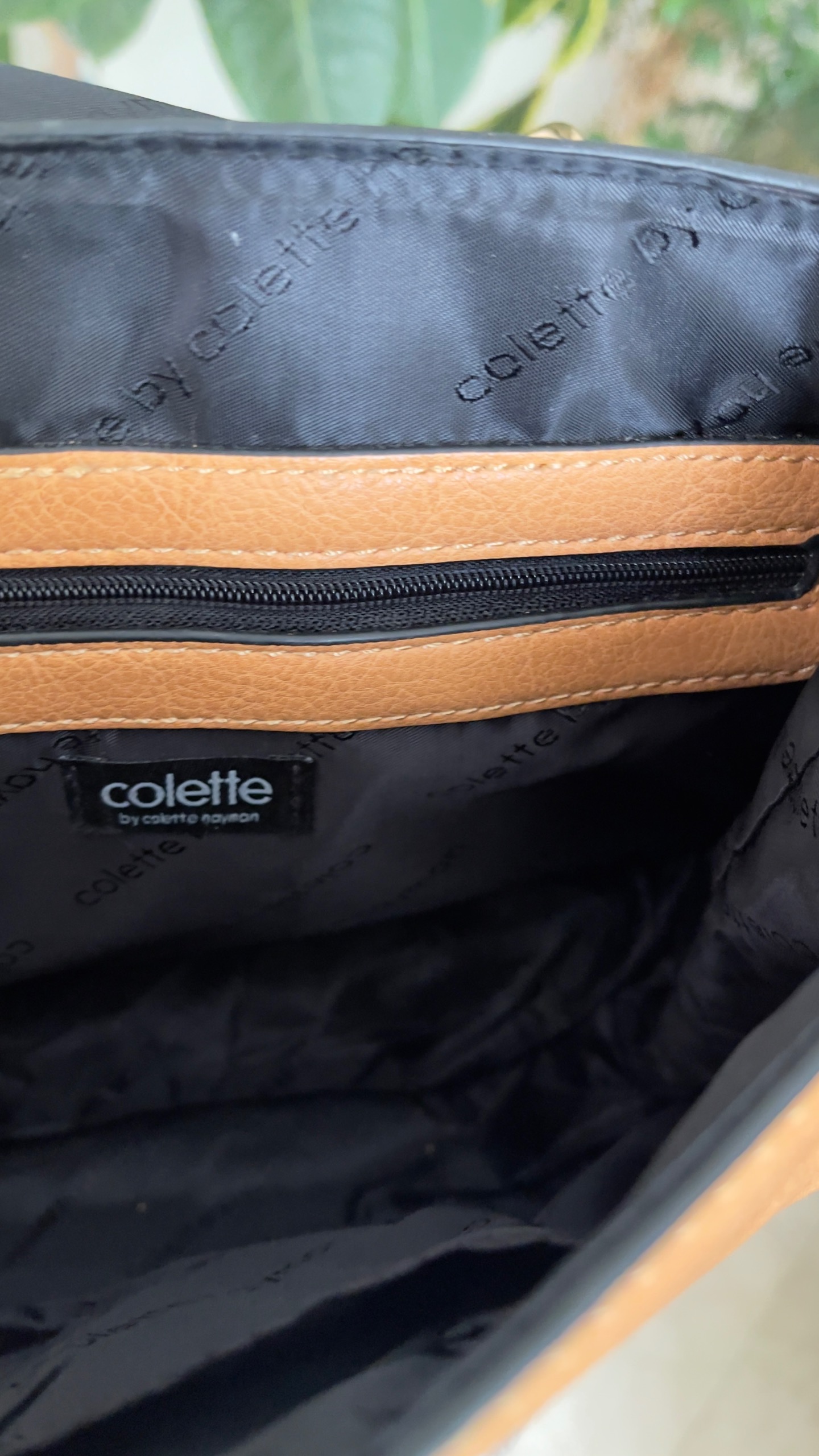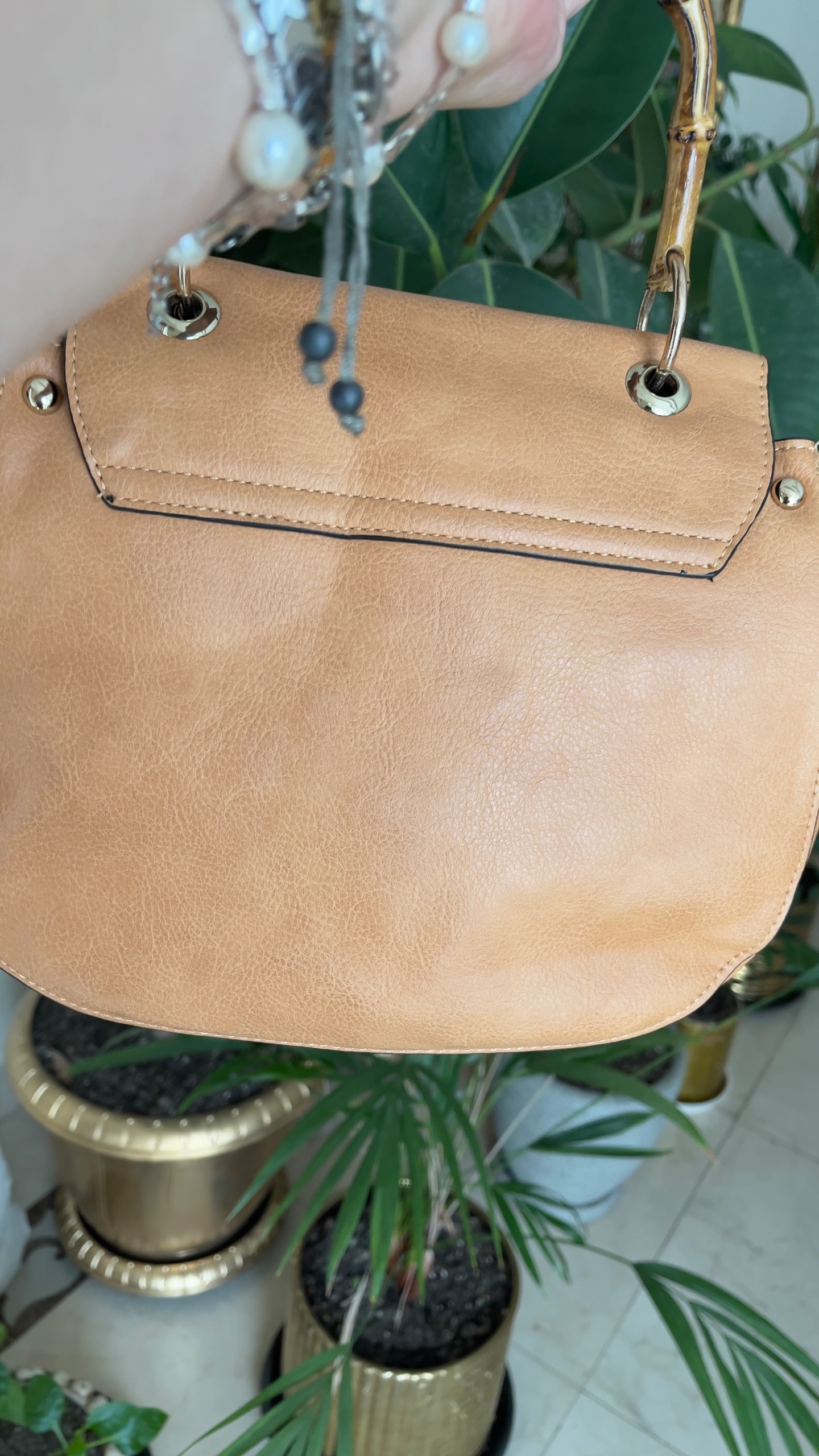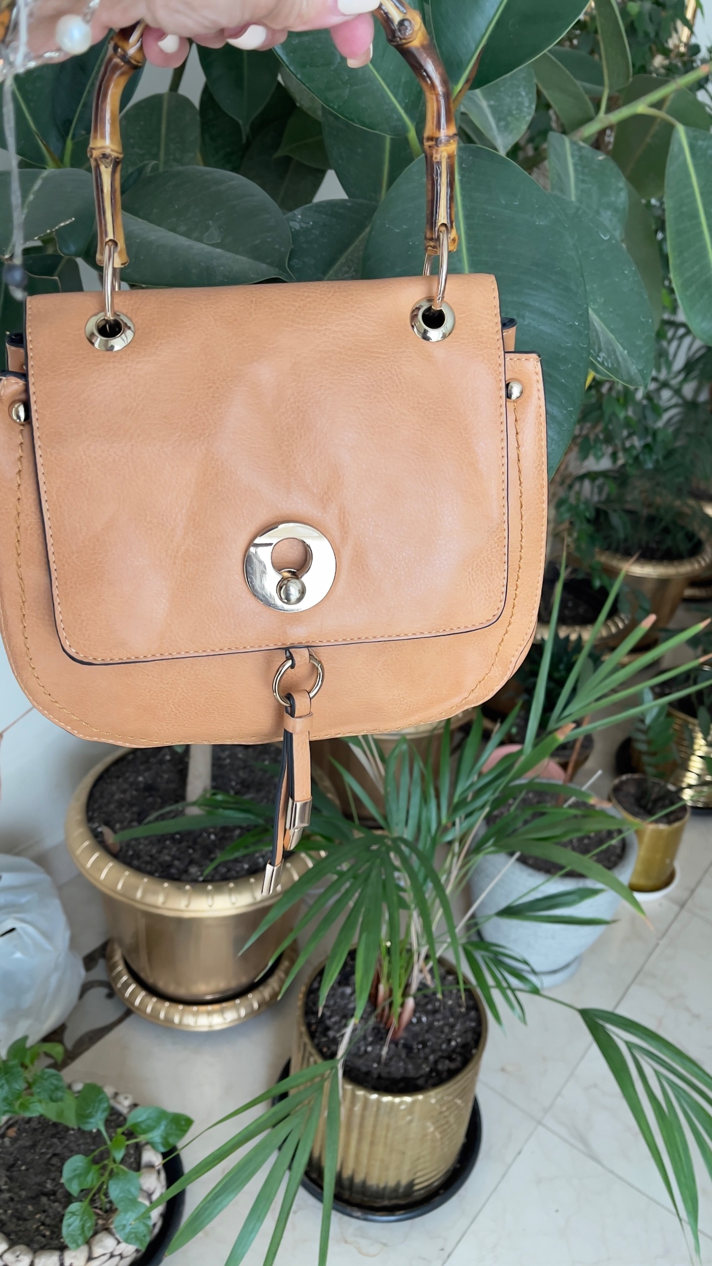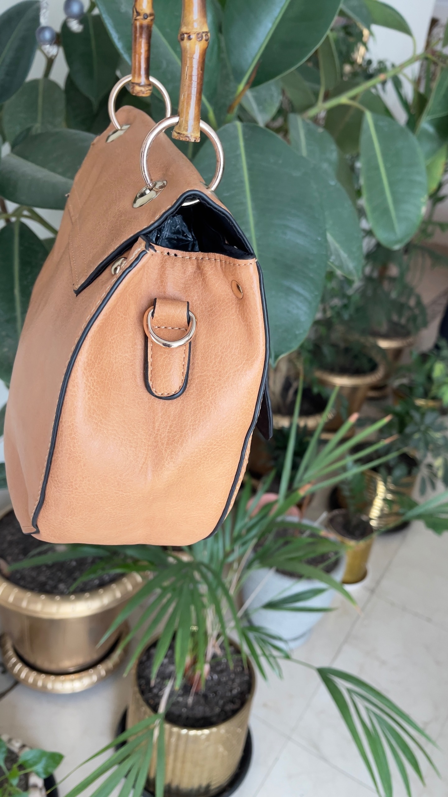 کیف تمام چرم ایتالیایی برند Cloette دسته چوبی بسیار شیک و جادار مناسب مجلسی و روزمره