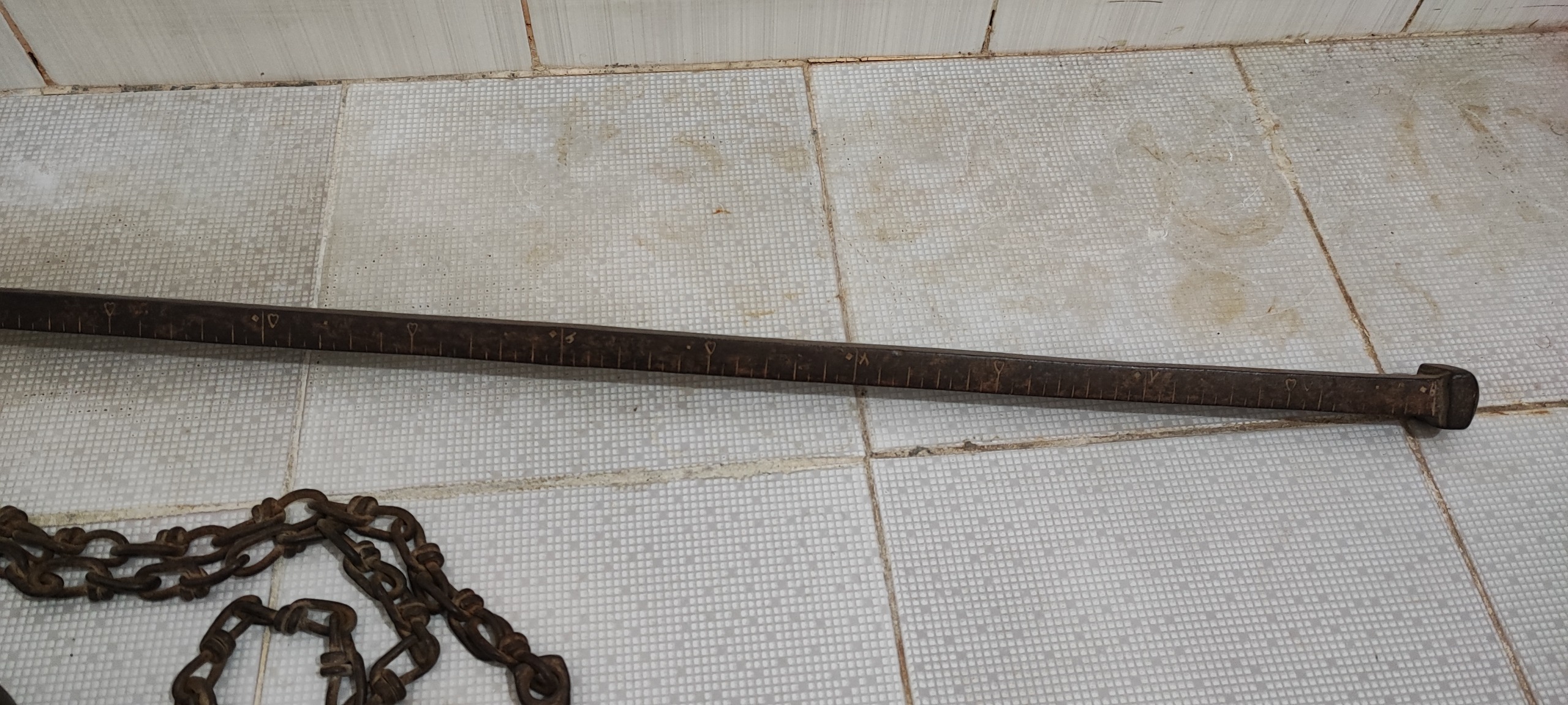 96 سانت طول، دارای مهر، زنجیر و وزنه سه کیلویی فابریک، نفیس و بکر و زیبا و کاردار