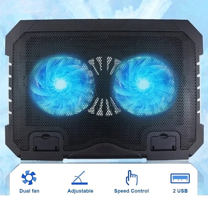 این کول پد مجهز به دو عدد فن 120 میلیمتری بوده و دارای نورپردازی رنگ آبی می باشند. موتور فن ها بسیار کم مصرف و کم صدا می باشند. امکان تنظیم سرعت چرخش فن با استفاده از کلید تعبیه شده در پشت محصول وجود دارد. جنس بدنه این کول پد ترکیبی از پلاستیک مرغوب و فلز می باشد. منبع تغذیه این محصول از طریق درگاه یو اس بی صورت می گیرد. این محصول مجهز به دو عدد درگاه USB بوده که از یکی برای تامین انرژی و دیگری برای اتصال انواع دستگاه ها مثل فلش مموری، موس و غیره به کار می رود. در قسمت های کناری این پایه خنک کننده نورپردازی RGB به صورت ساید قرار دارد که شما می توانید با استفاده از کلید تعبیه شده نحوه نورپردازی و افکت های نوری را تغییر دهید. این محصول دارای استند موبایل نیز می باشد که در صورت نیاز می توانید استند موبایل را به کول پد متصل یا از آن جدا نمایید. این محصول مجهز به پایه های تنظیم ارتفاع در پنج سطح می باشد که شما می توانید مطابق نیاز خود آن را تنظیم کنید. همچنین مجهز به پایه های ضد لغزش لپ تاپ می باشد.