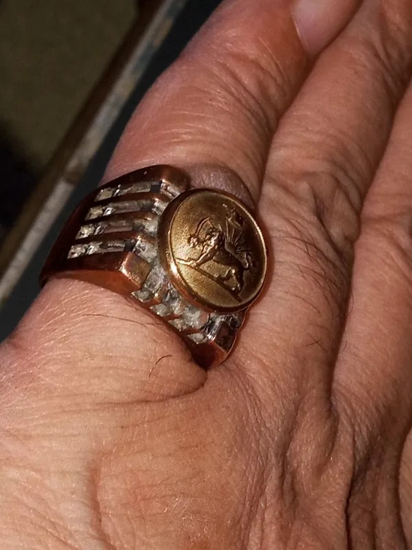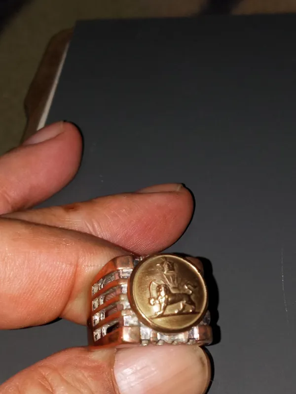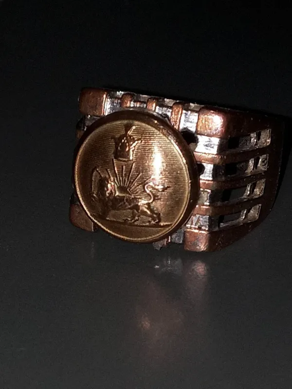 انگشتر قدیمی درشت مسی با دکمه شاهنشاهی