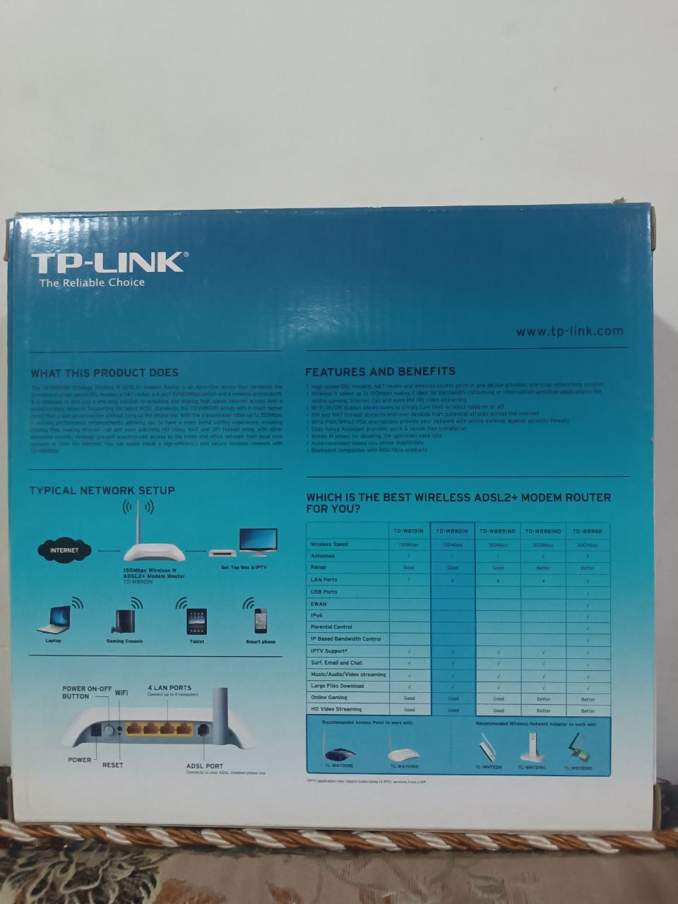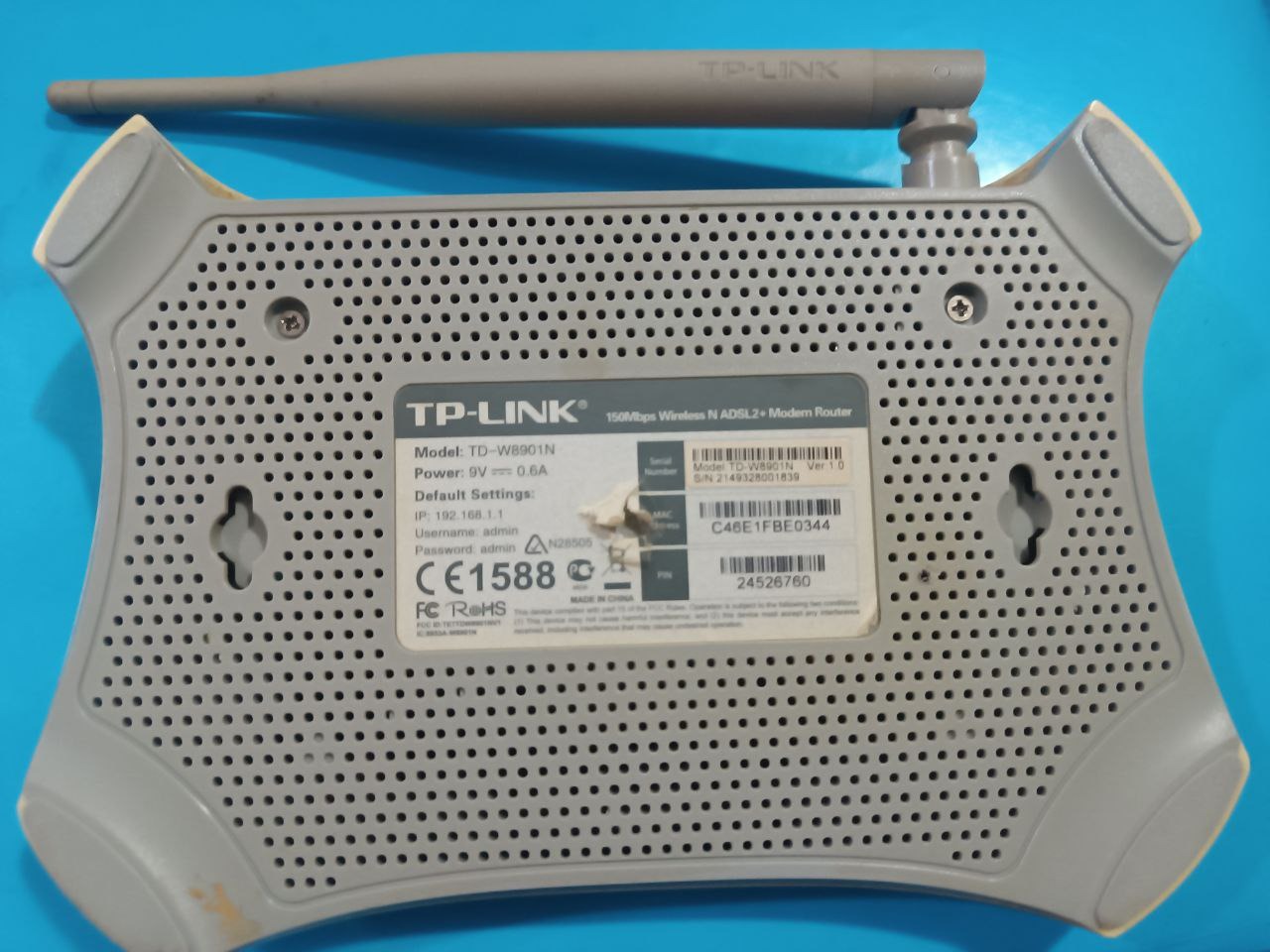 یکعدد مودم تی پی لینک ADSL2+ MODEL TD -W8901N با سرعت 150 mbps که تا الان داشتم استفاده می کردم و بدلیل خریدن مودم جدید اینو گذاشتم برای فروش . این دستگاه رو یکبار برای تعمیر دادم که خازنش خراب شده بود که با تعویض خازن همه چیز اوکی هست .