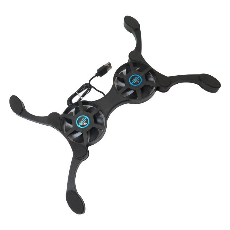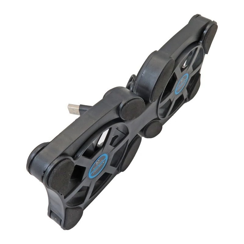 فن خنک کننده (کول پد) لپ تاپ مدل تاشو دارای دو فن 6 سانتیمتری کم صدا، مناسب برای خنک کردن لپ تاپ و سایر دستگاه های الکترونیکی (مودم، انواع آداپتور، گوشی هنگام شارژ و ...) میباشد. با توجه به سایز کوچک این مدل، برای لپ تاپ های 14 اینچی یا کوچکتر مناسب میباشد. ابعاد در حالت بسته 19 در 9 سانتیمتر و در حالت باز 24 در 23 سانتیمتر میباشد. این مدل یکی از کوچکترین خنک کننده ها بوده و برای کسانی که نیاز به جابهجایی مداوم لپ تاپ دارند گزینه مناسبی است. طول سیم حدود 35 سانتیمتر بوده و دارای سوکت USB است که میتوان به لپ تاپ، شارژر موبایل، پاوربانک و ... متصل کرد