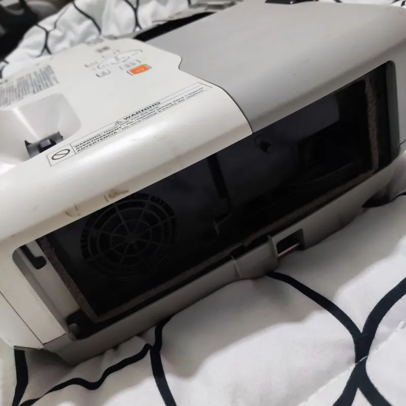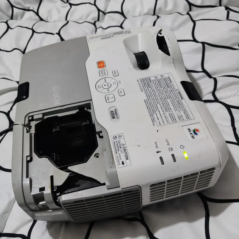 دستگاه روشن میشه و تمام فن ها کار میکنه و وقتی نور چراغ قوه جای لامپ میزارم رو دیوار کلمه اپسون نمایش داده میشه ، ظاهر شکستگی داره مطابق تصویر.
