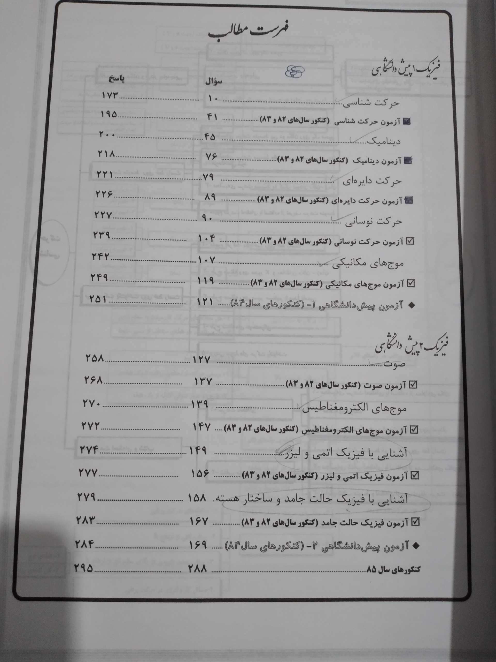 10 سال کنکور فیزیک پیش دانشگاهی ریاضی 1 و 2