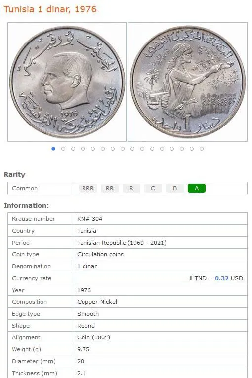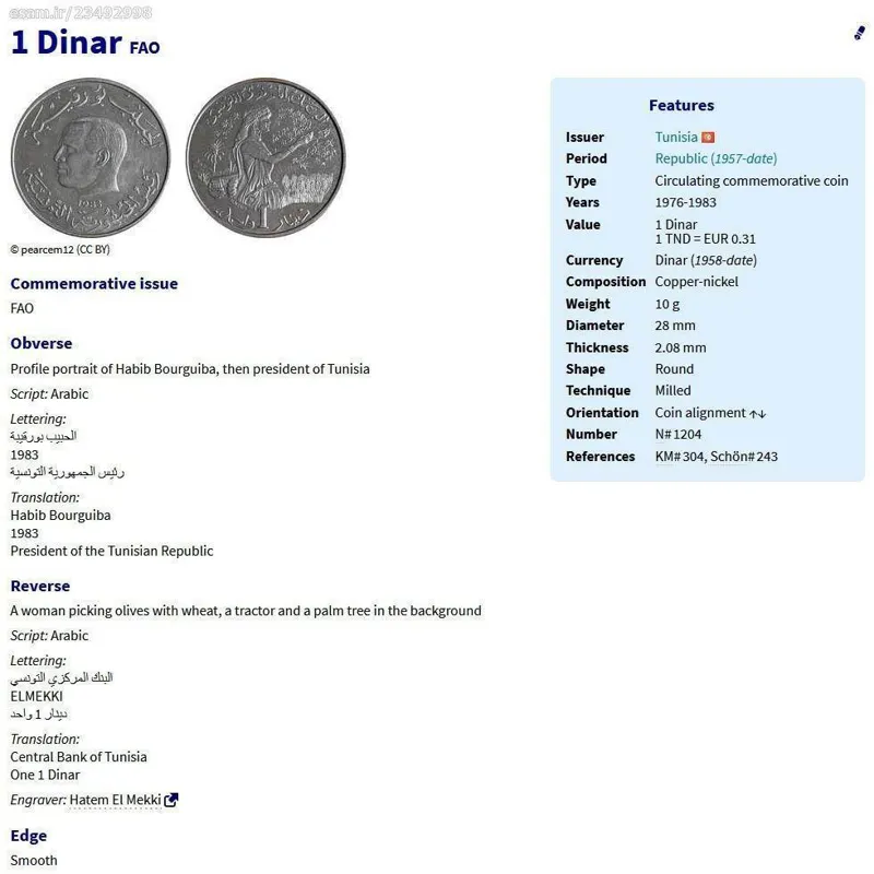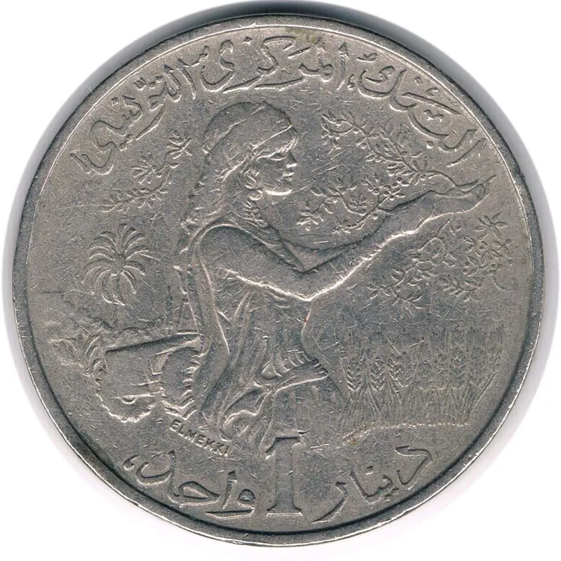سکه یادبودی 1 دینار تونس 1976 (نایاب) ضرب آلمان