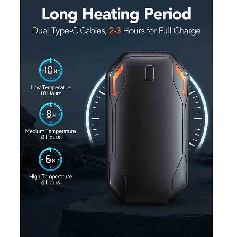 گرمکن دستی قابل شارژ: شارژر با لیتیومی قابل شارژ و پورت شارژ USB-C، میتوانید آن را در هر زمانی با خود حمل کنید و در کیف خود قرار دهید. این گرمکن دست USB تنها در 3-4 ساعت به طور کامل شارژ میشود.