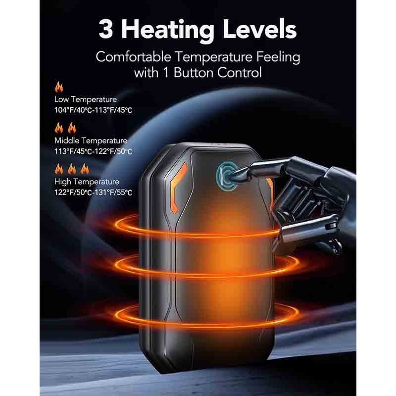 با مبارزه با سرمایشی: با گرم شدن سریع 3 ثانیهای و 3 سطح دمای قابل تنظیم، گرمکن دستی ما میتواند 4 تا 8 ساعت گرم نگه دارد، به اینکه کدام سطح را تنظیم کنید. سطح دمای 40 تا 55 درجه سانتیگراد است، بنابراین شما به سرعت و به راحتی احساس گرما می کنید، این گرمکن