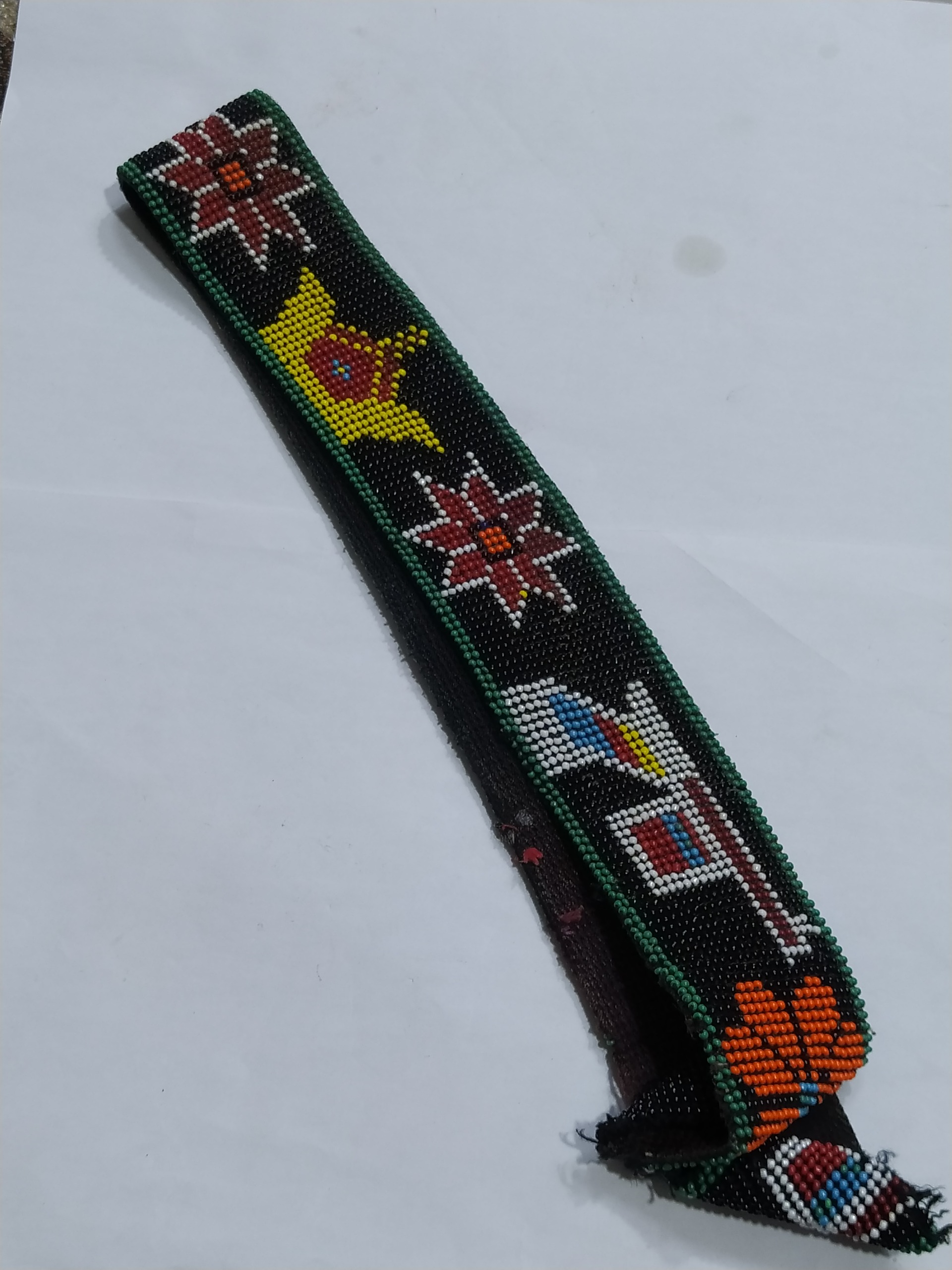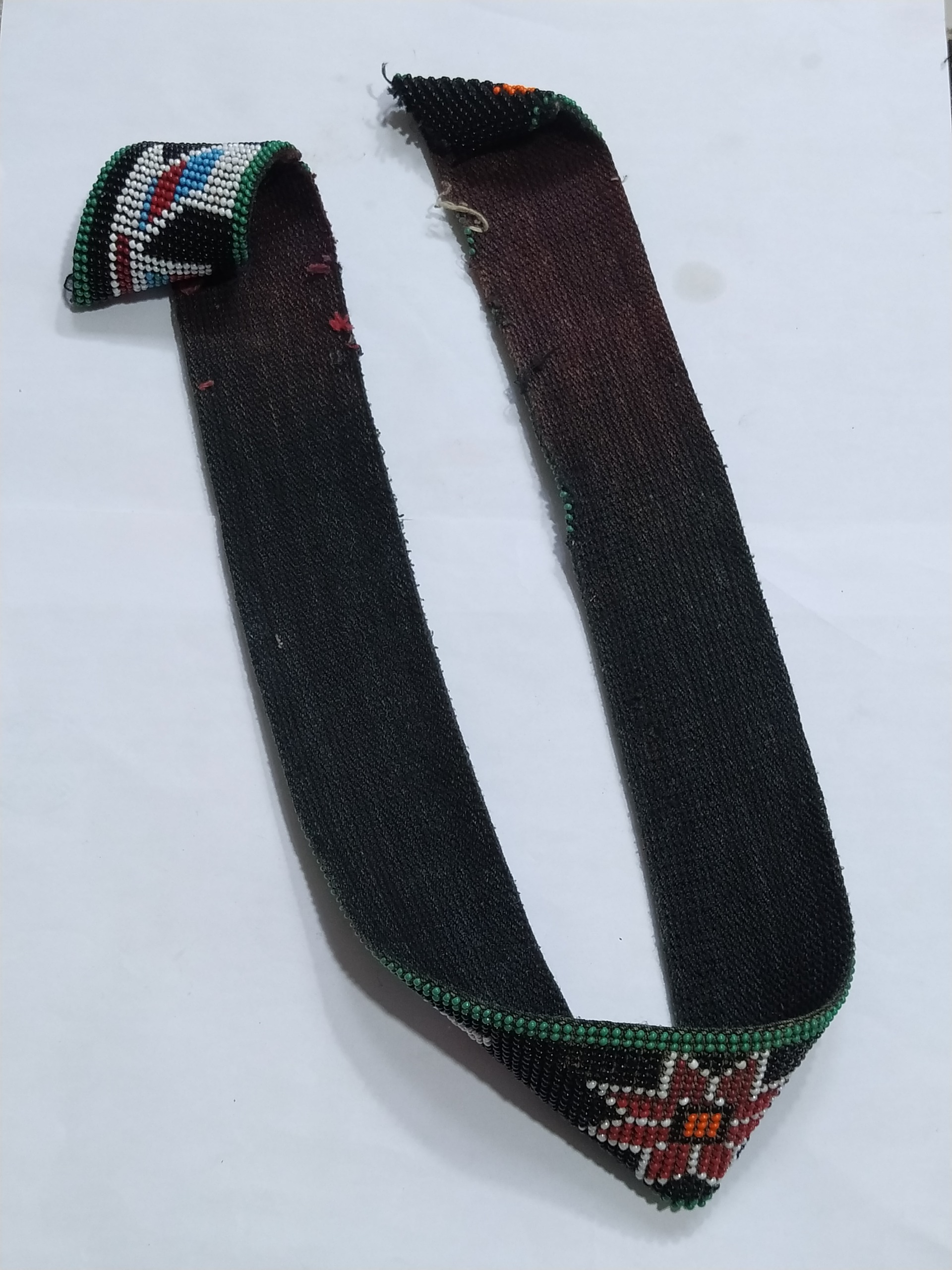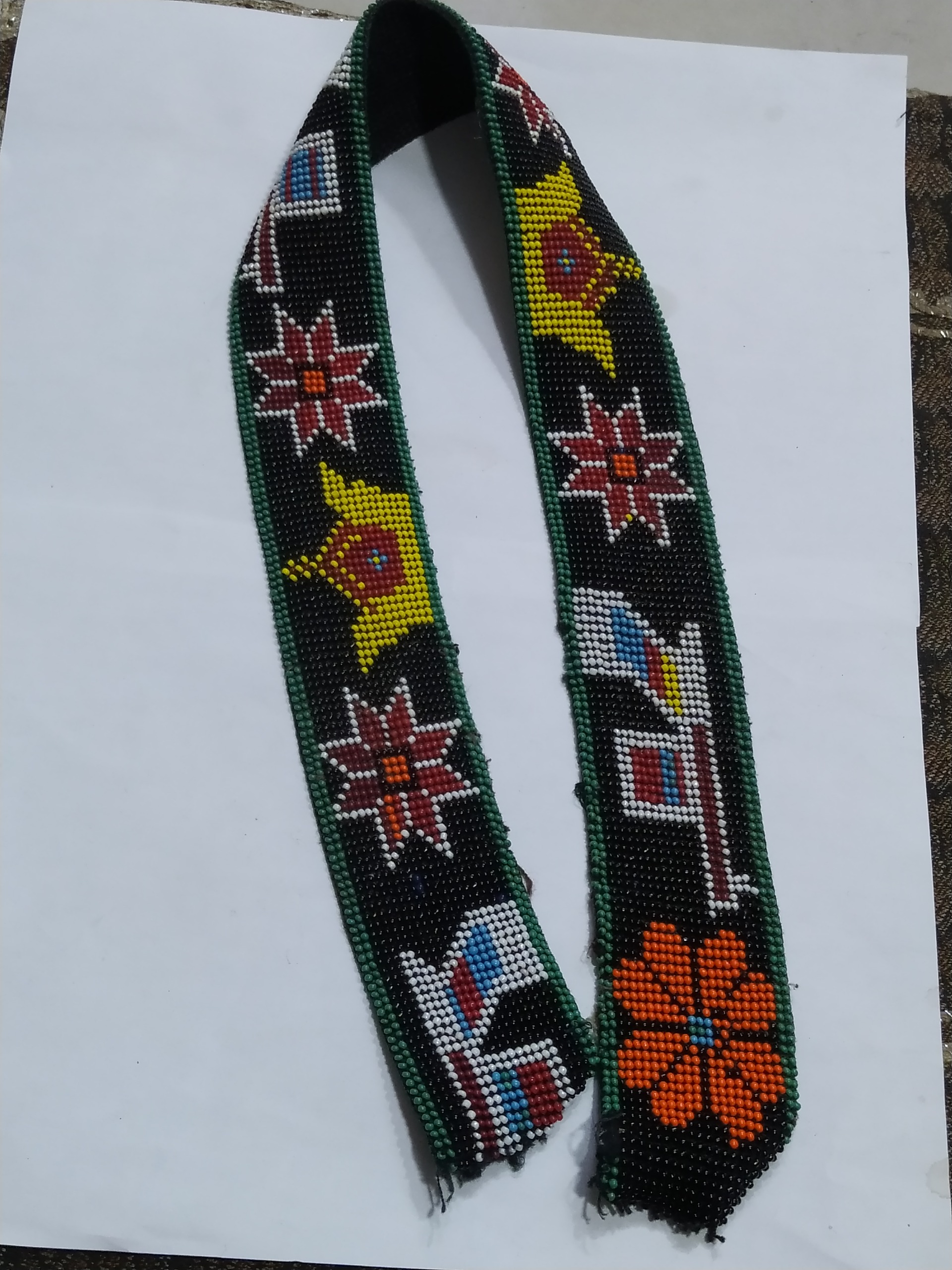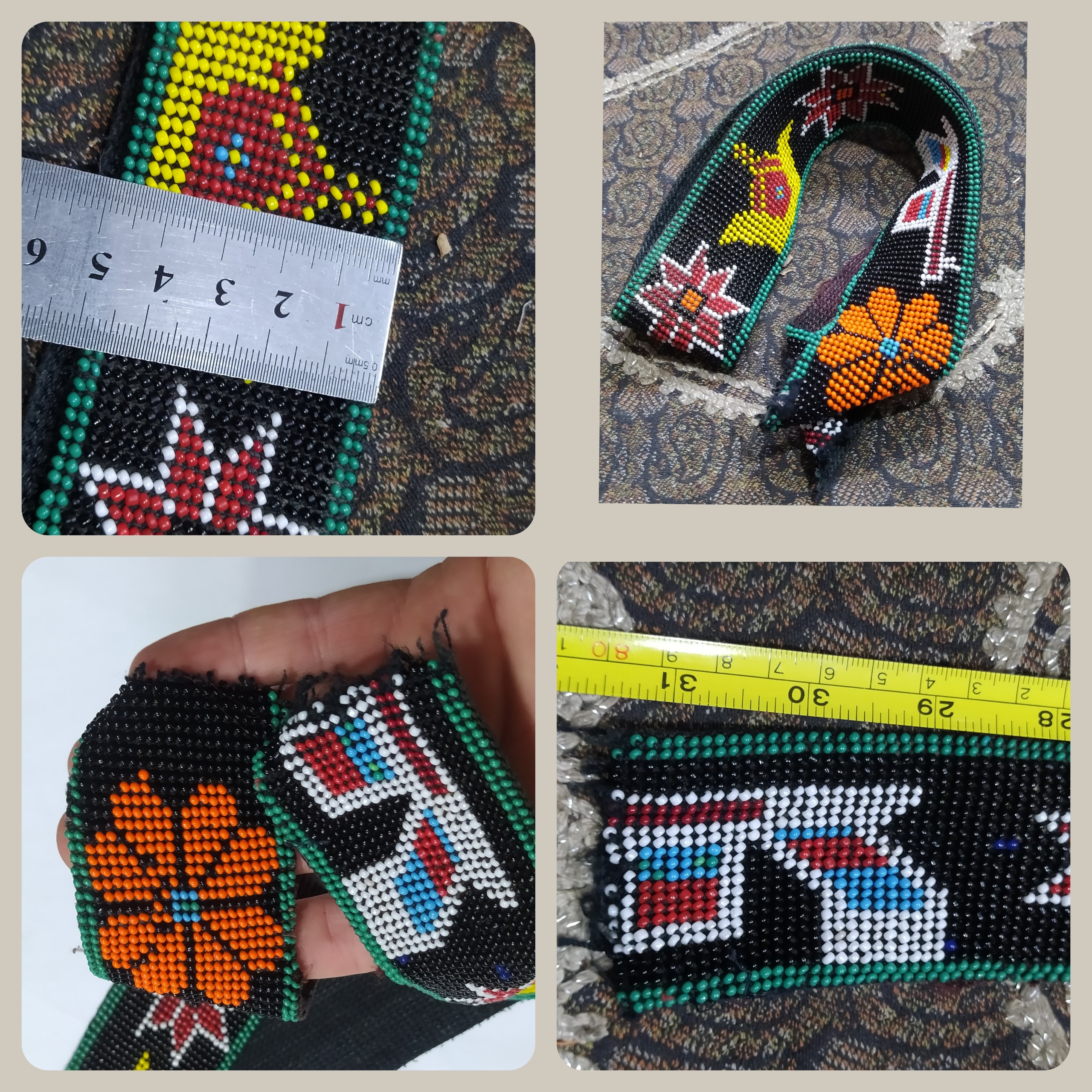 کمربند منجوق بافی قدیمی با نقش تاج پهلوی