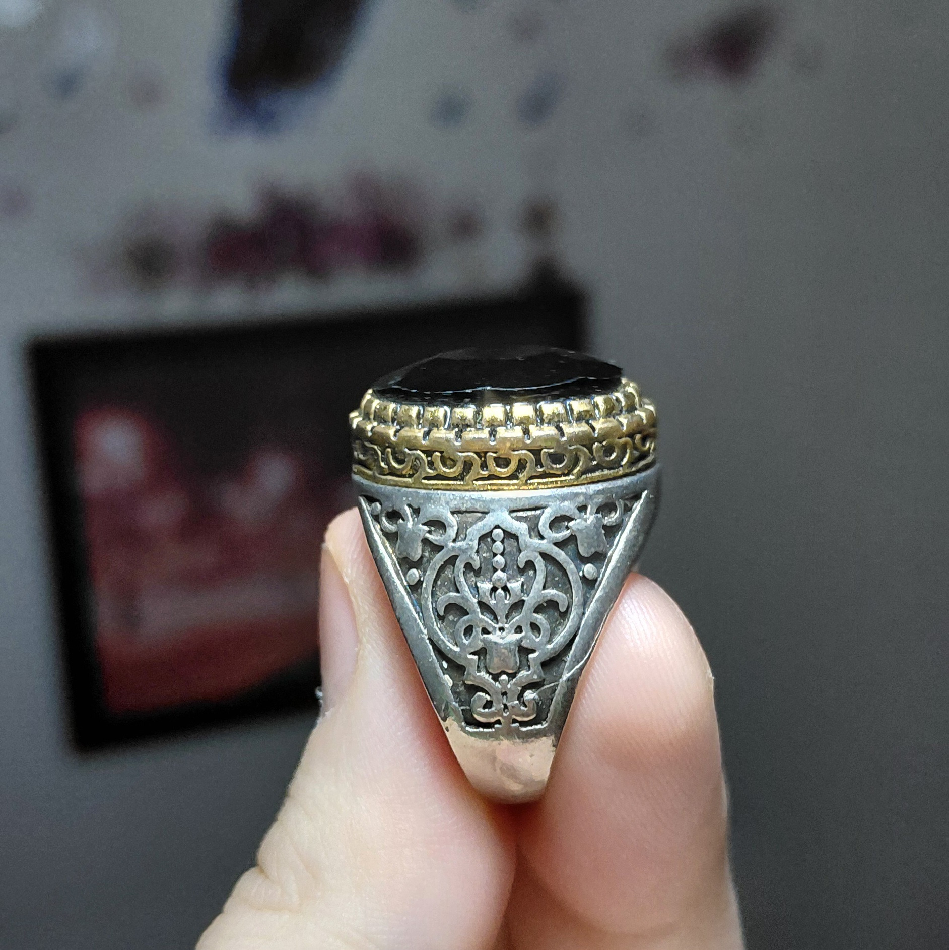 انگشتر با نگین سنتیک رکاب طرح قلم زنی