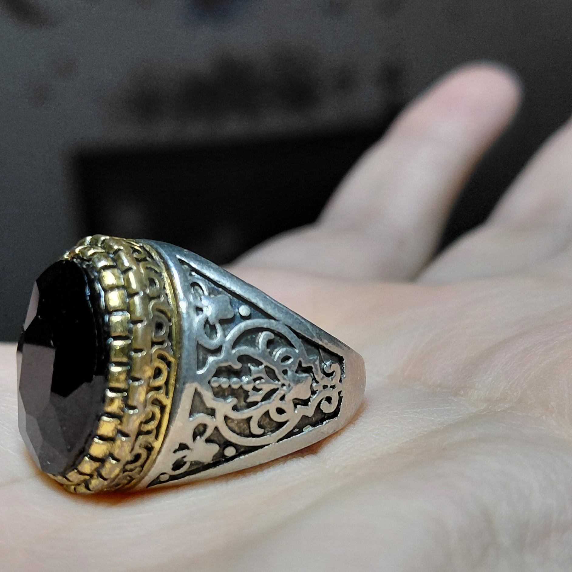 انگشتر با نگین سنتیک و رکاب طرح قلم زنی
