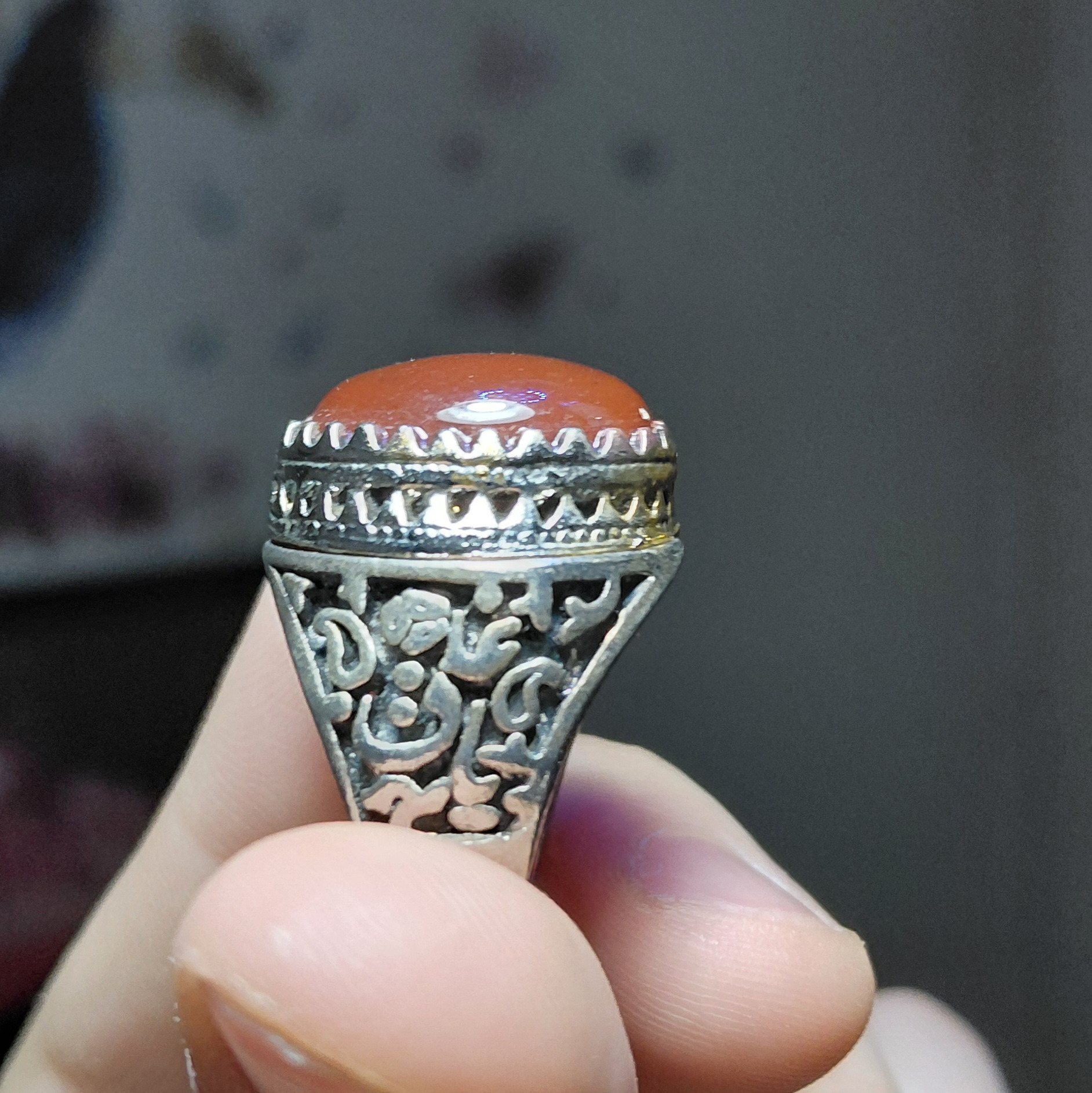 انگشتر با نگین عقیق وبا رکاب طرح قلم زنی