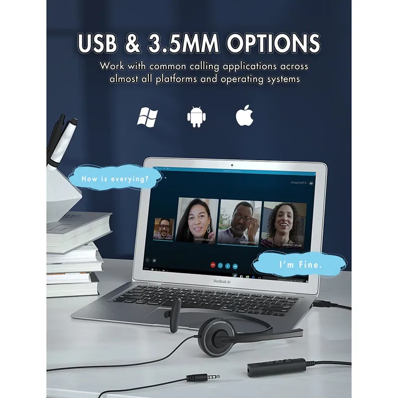 هدفون تجاری یک طرفه : در مقایسه با هدست USB Mpow 071 ، این هدست کامپیوتر 323 از طراحی یک طرفه برخوردار است که برای داشتن گوش باز به محیط اطراف در تماس های دسکتاپ ایده آل است .