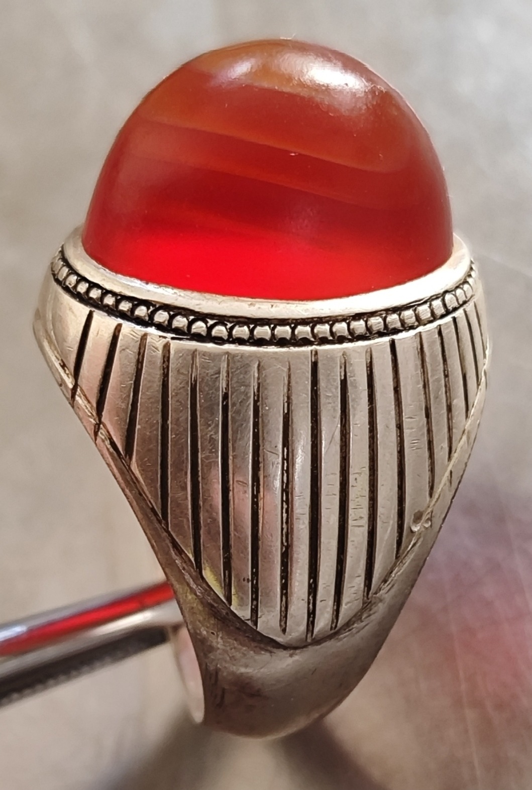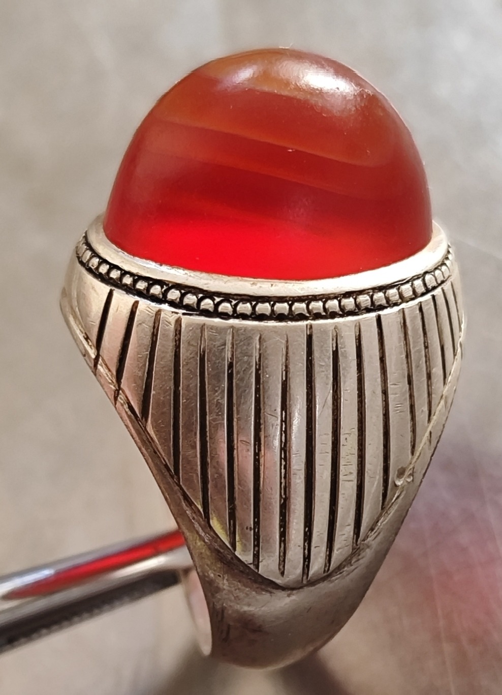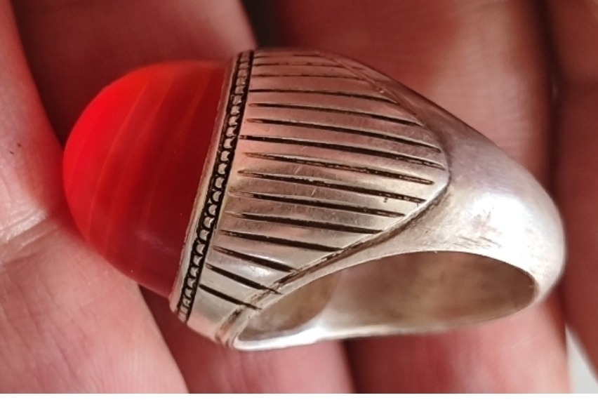 انگشتر عقیق یمن طوق دار و کلاهدار لامپی کهنه