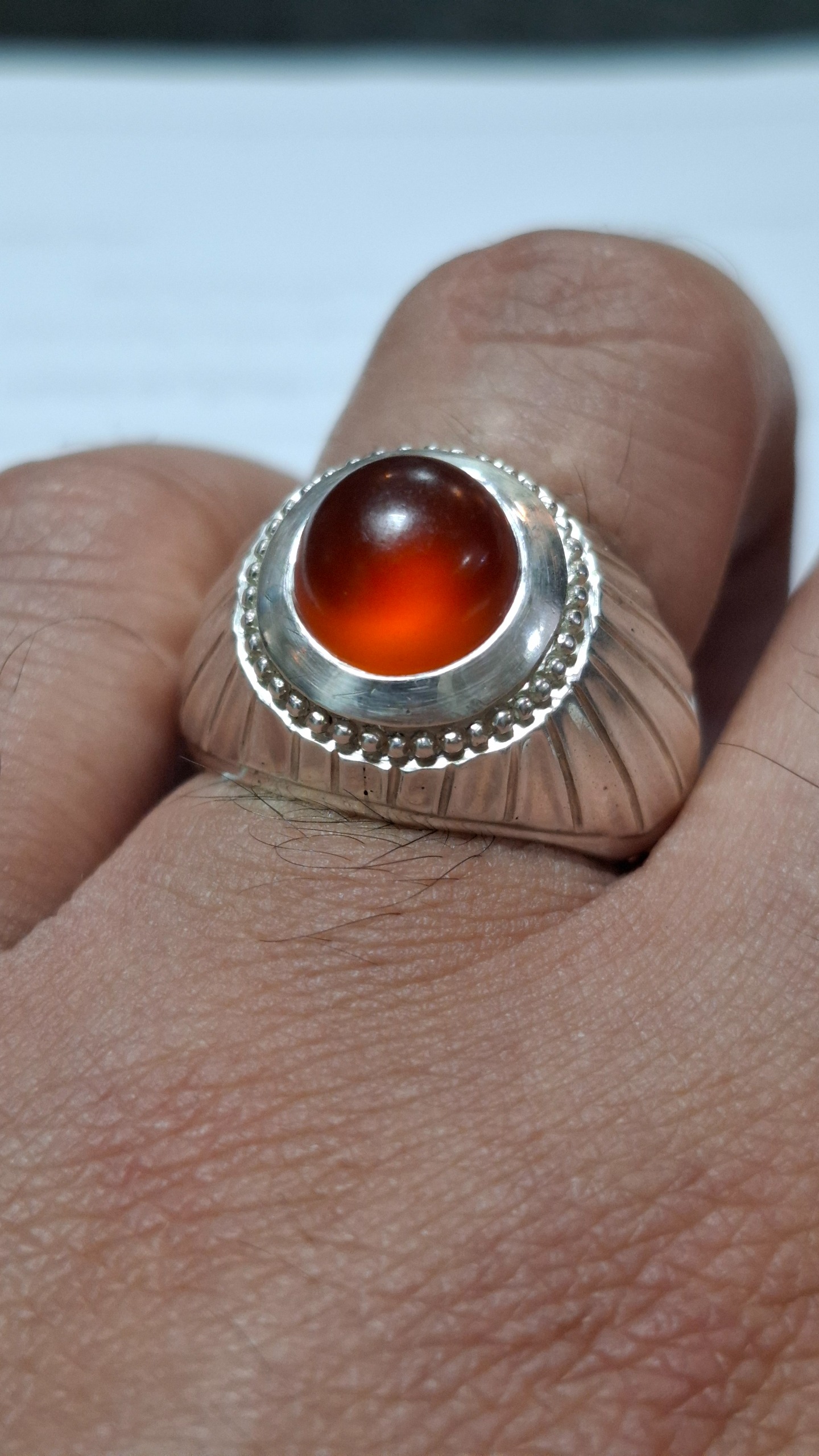 انگشتر عقیق کهنه یمنی چهارکله تیغ آبدار رکاب زیبا و عالی از استاد رشیدی .سایز 59. 60