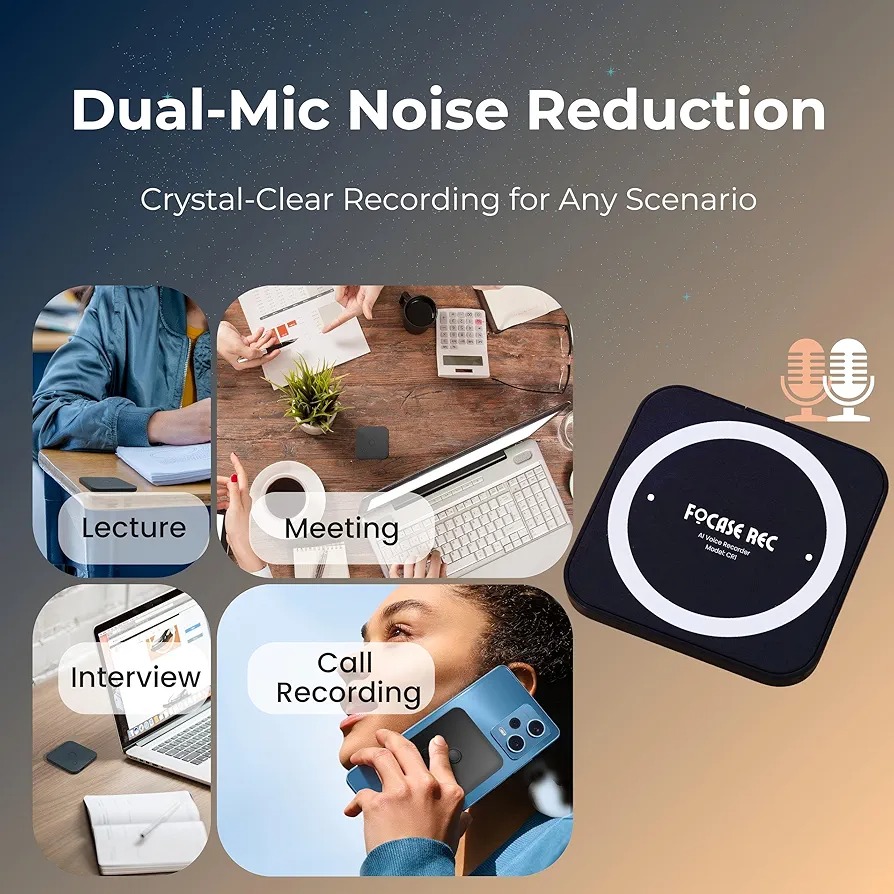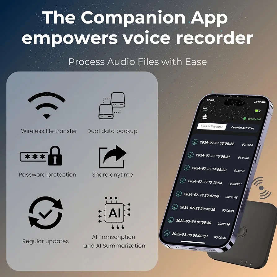 ضبط کننده صدای هوش مصنوعی با میکروفون دوگانه و کاهش نویز: این دستگاه ضبط صدای ممتاز نه تنها صدای با کیفیت بالا را ضبط میکند، بلکه به یک برنامه اختصاصی برای ویژگیهای پیشرفته مانند تبدیل صدای هوش مصنوعی به متن و خلاصه های GPT-4o