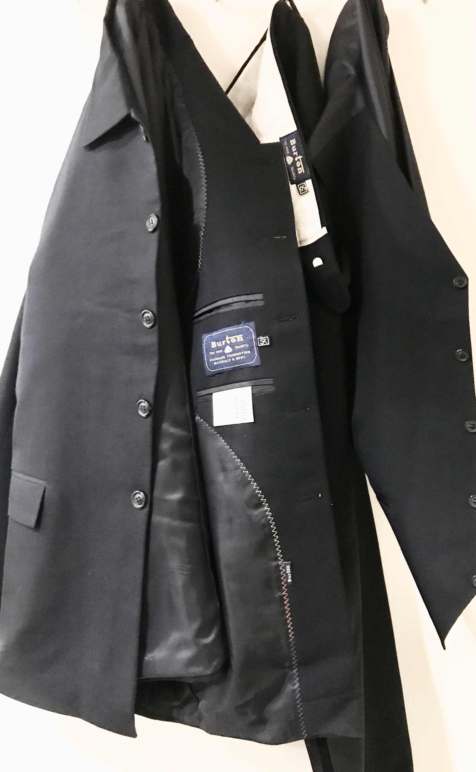 - ست کامل کت و شلوار و جلیقه سرمه ای یقه پیراهنی