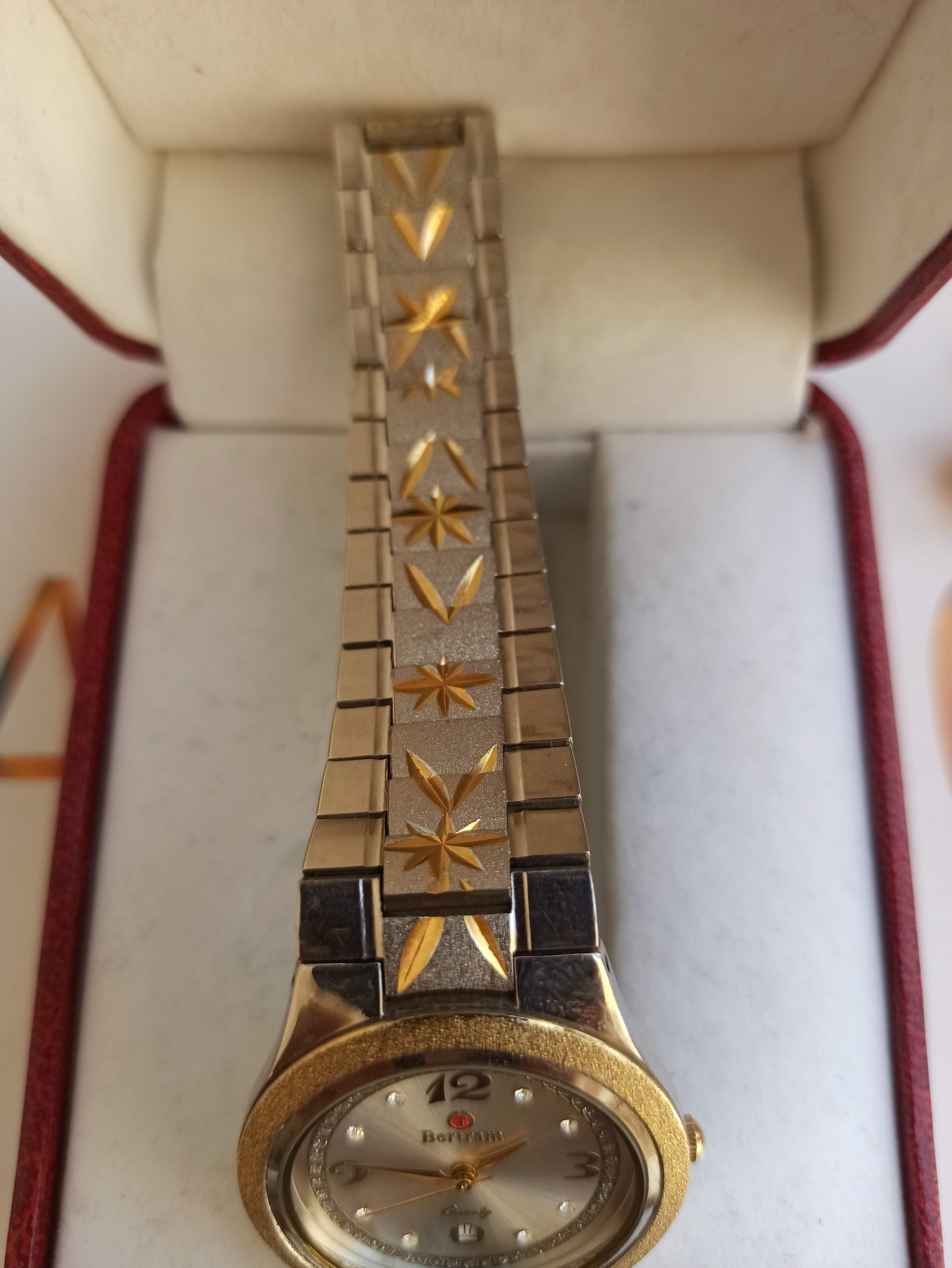 این ساعت مچی با طراحی کلاسیک و بند فلزی طلایی و نقرهای، مناسب برای استفاده روزمره و مجالس میباشد. ساعت ظاهر بسیار شیکی دارد. اعداد و عقربهها خوانا هستند. انتخابی ایدهآل برای افرادی که به استایل کلاسیک علاقه دارند.