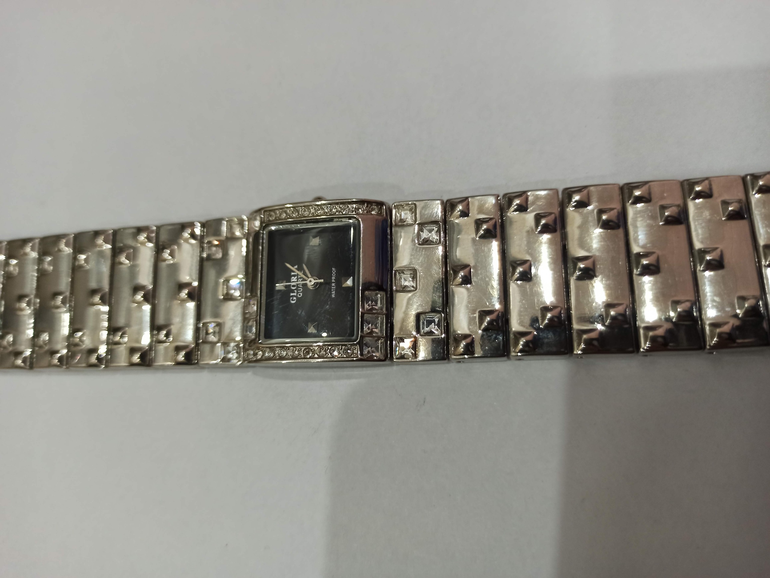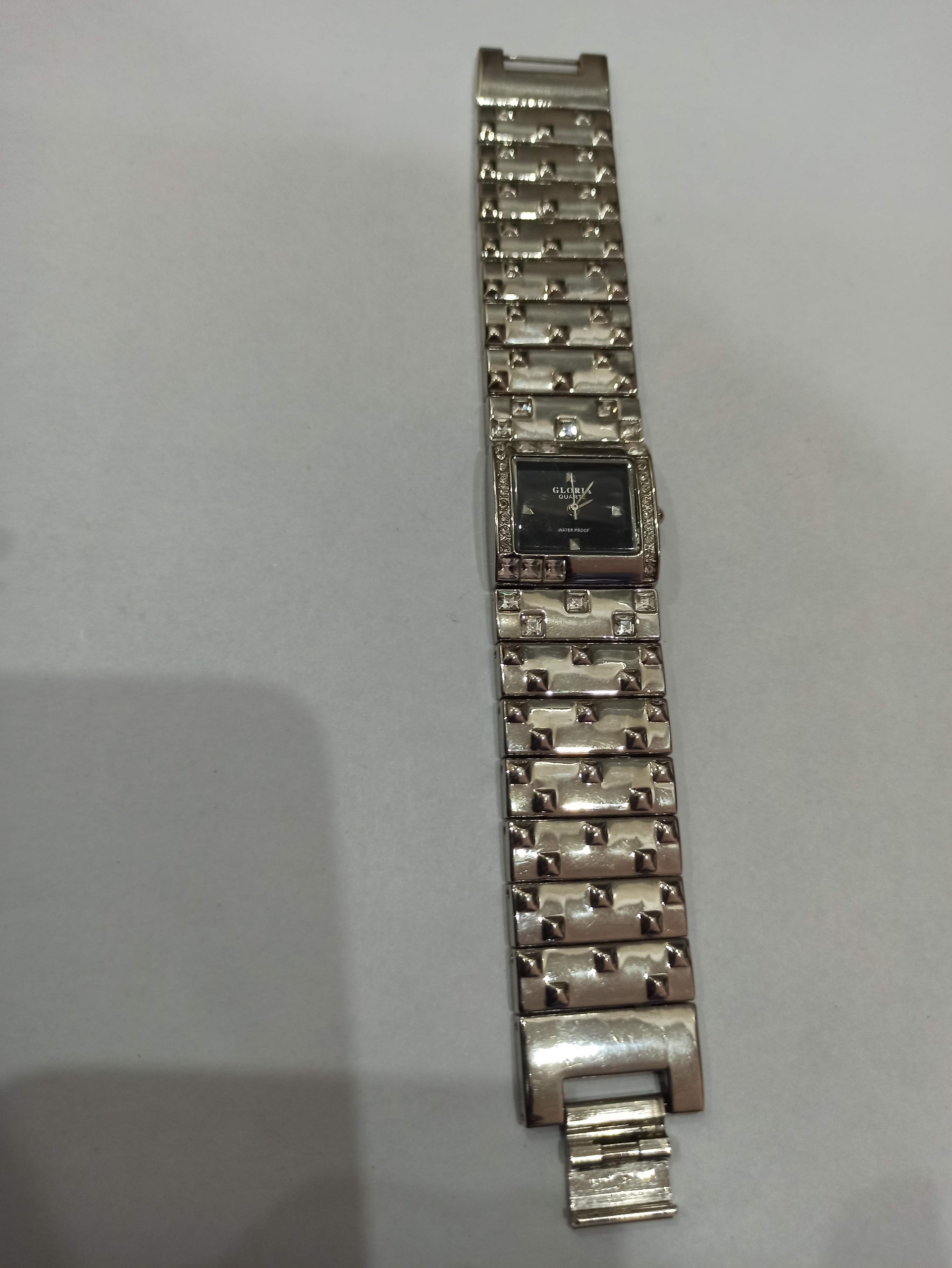 این ساعت مچی زنانه با طراحی مستطیلی و نگینهای زیبا مناسب برای استفاده روزمره یا مجالس است. بند فلزی مقاوم و صفحه مشکی شیک جذابیت خاصی به ظاهر شما میبخشد. برند Gloria و کیفیت ساخت بالا. مناسب برای هدیه یا استفاده شخصی.