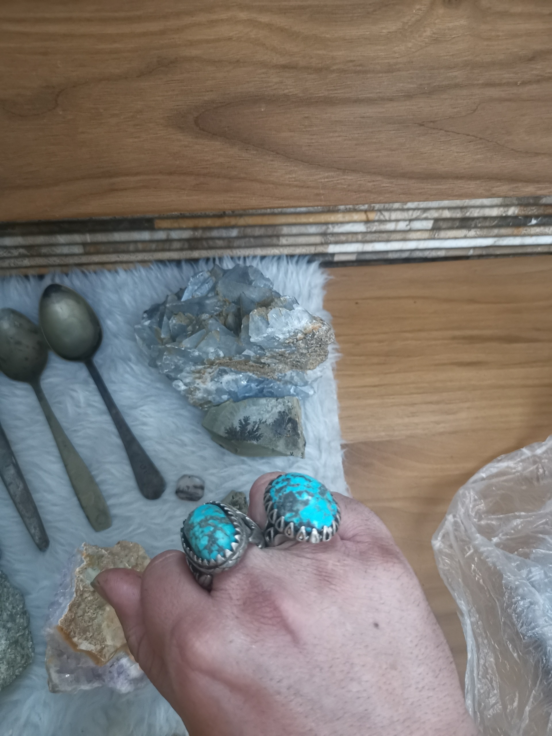 دوتا انگشتر بزرگ فیروزه با رکاب ذست ساز قدیمی